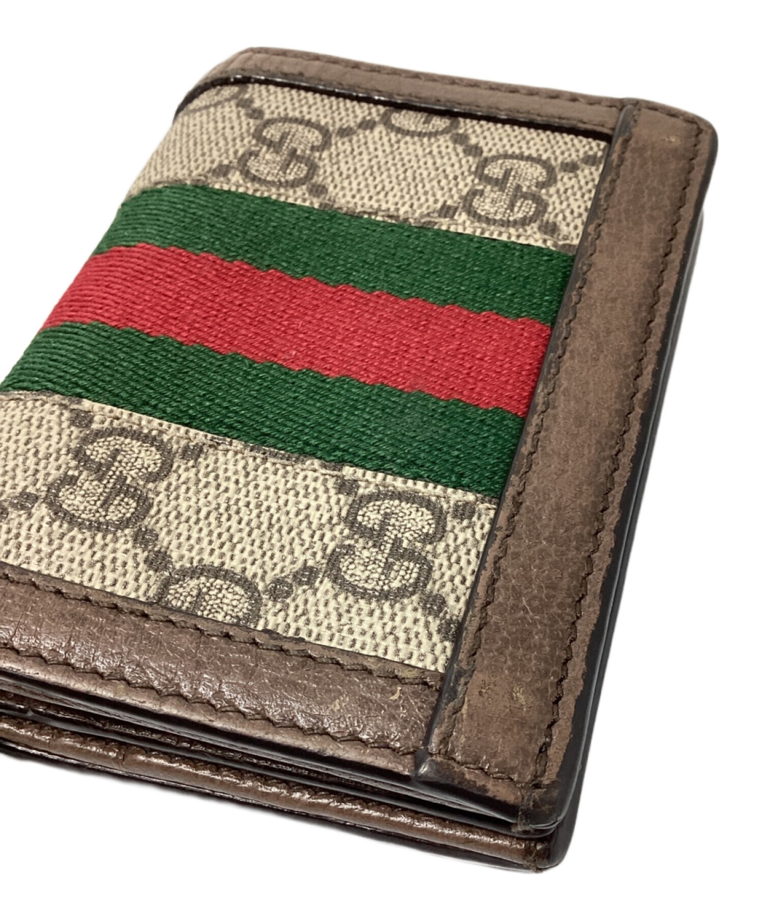 | スタッフコメント | オールドグッチを象徴するようなシェリーラインにGGマークがあしらわれた二つ折り財布でございます。ポケットに収まるコンパクトなサイズ感で、カードや小銭などを取り出しやすく女性の方でも扱いやすい一点です。 |