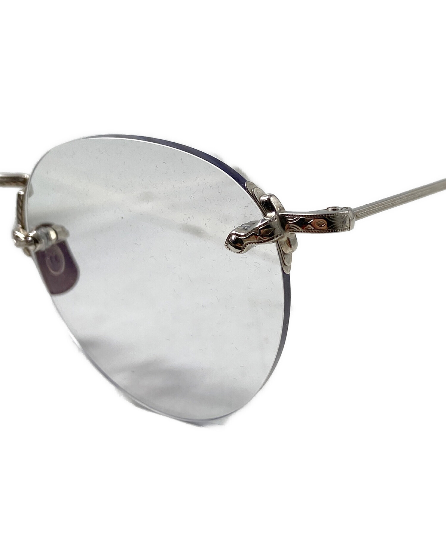| スタッフコメント | リムレスのすっきりとしたデザインのサングラスです。リムがないことでブリッジ部分や、ヨロイ部分のメタルパーツの彫刻模様がより際立つ作りになっています。全体がシルバーで統一されているため上品な仕上がりです。 |