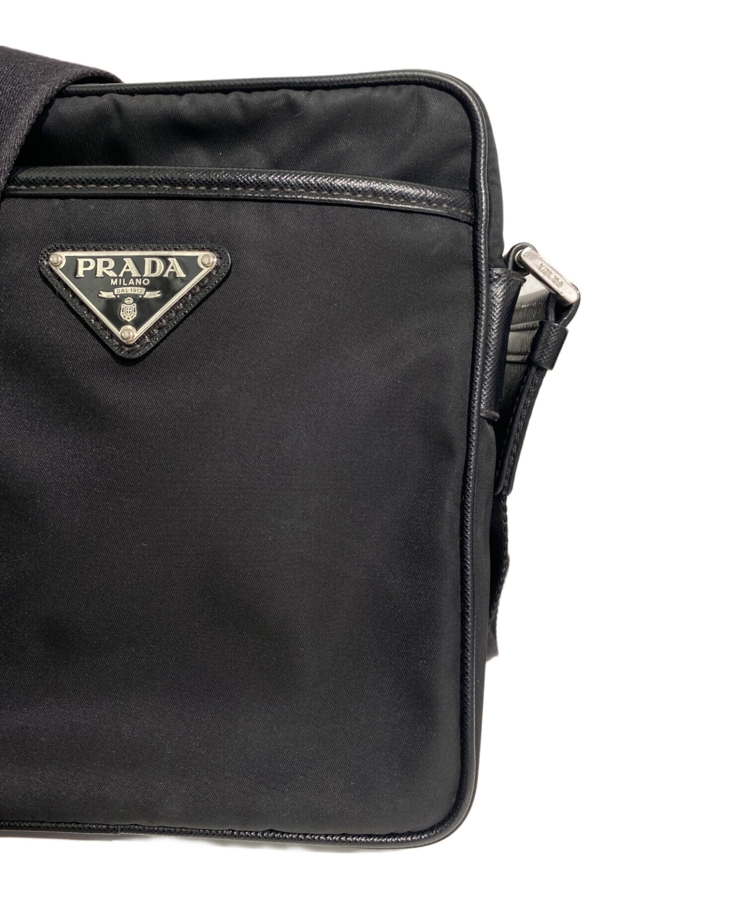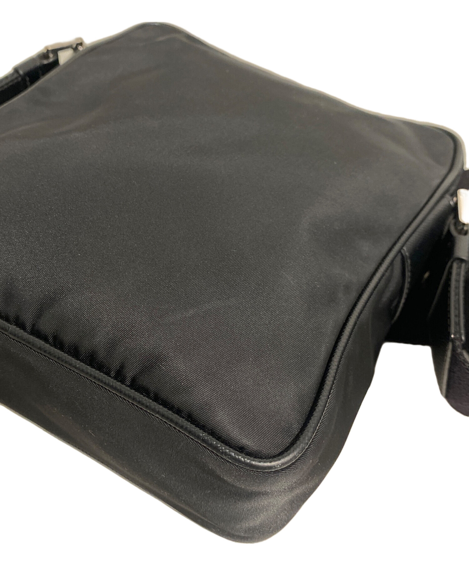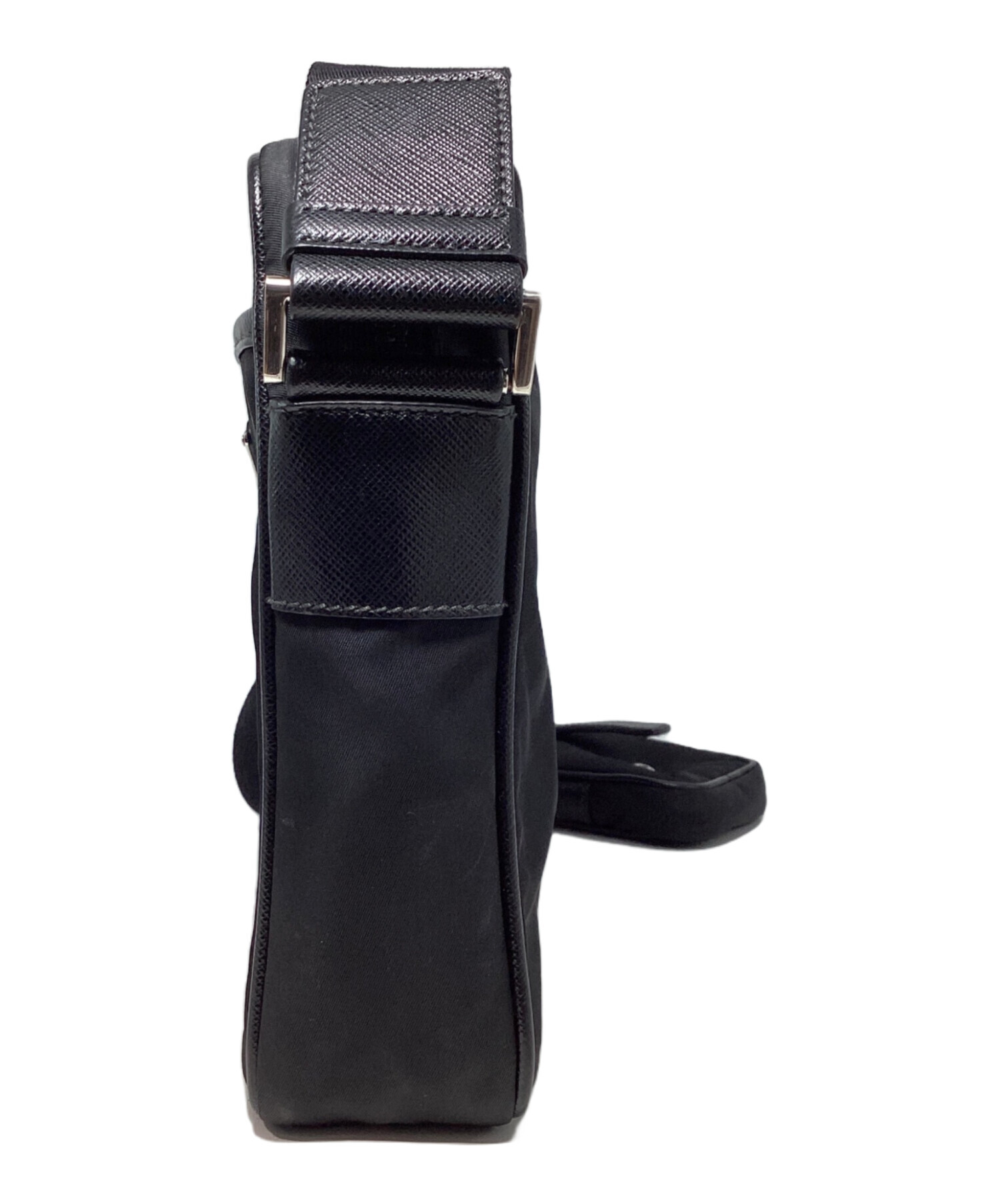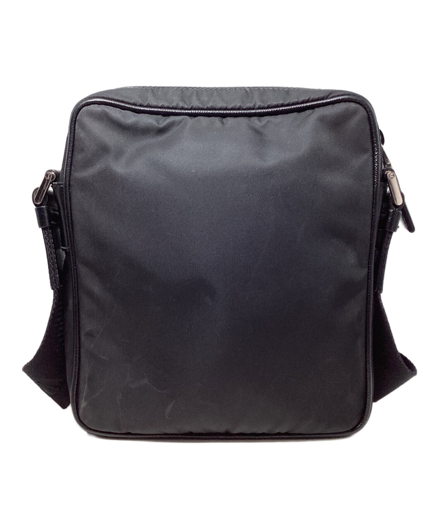 • PRADA(プラダ)PRADA (プラダ) ReNylon+SAFFIANO Square Shoulder Bag(リナイロン+サフィアーノスクエアショルダーバッグ) ブラック サイズ:-の古着・服飾アイテム ファスナーサイドに汚れやテカリ