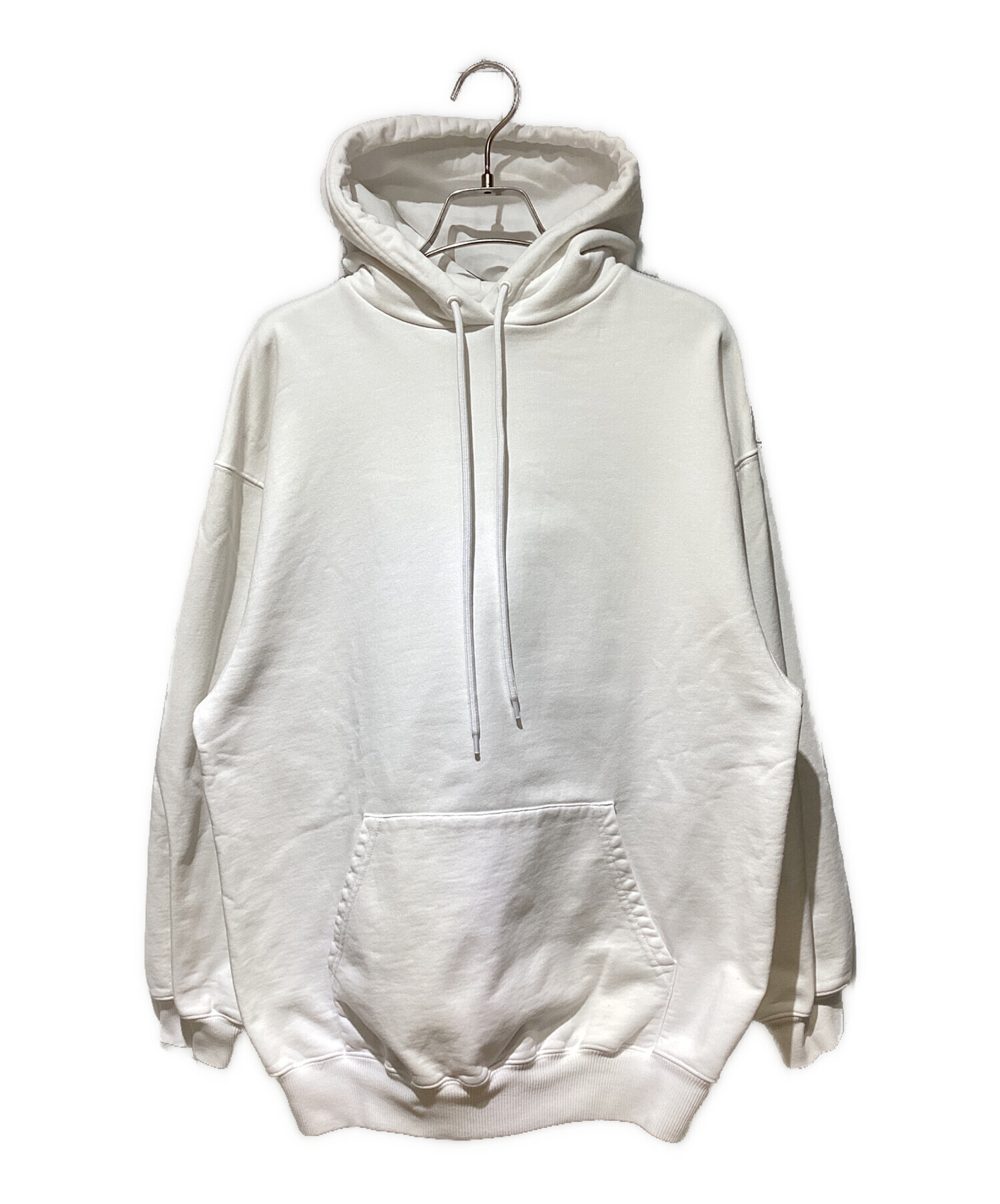 | スタッフコメント | 全面は無地で、バックにブランドロゴがデザインされたシンプルなデザインのフーディになります。ホワイトカラーでどんなスタイルにもマッチいたします。上質なコットンを使用しているため,着心地よく快適に過ごすことができます。 |