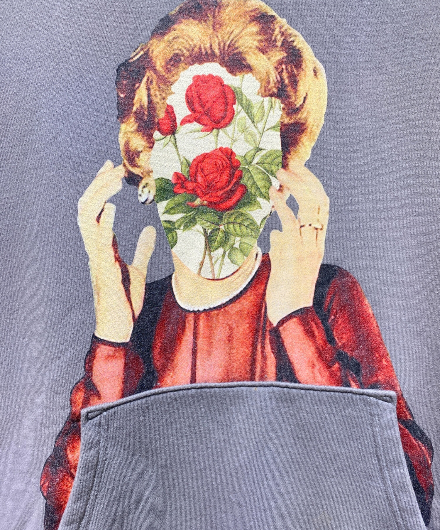 | スタッフコメント | 顔が薔薇になった女性のコラージュ写真がプリントされたプルオーバーパーカーでございます。インパクトのあるデザインで、一枚でも存在感のあるアイテムです。ミドルウェイトのコットン生地で、3シーズンで着られる使い勝手の良さも魅力的です。 |