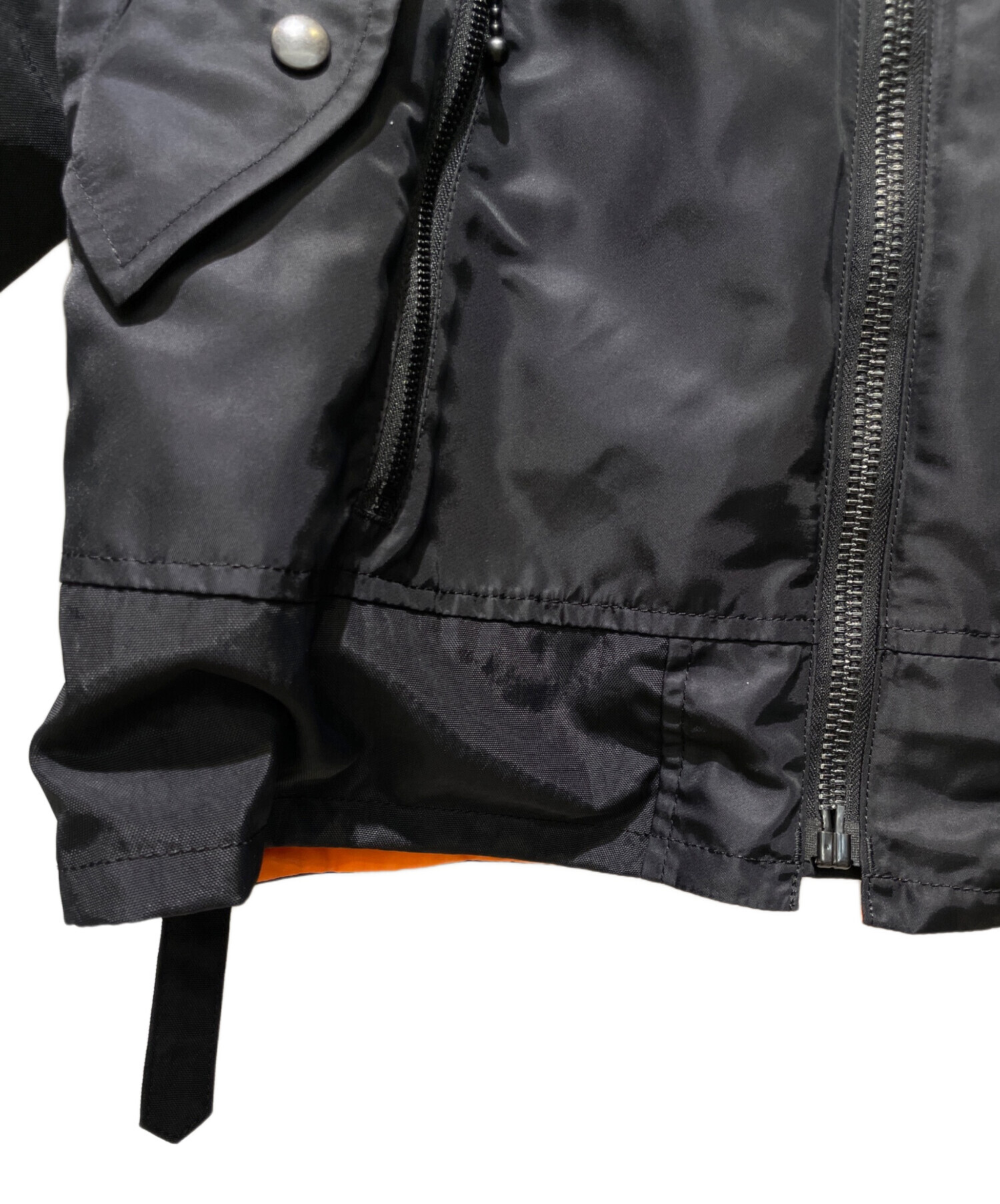 スタッフコメント アルファとコラボした、25SSコレクションのナイロンツイルジャケットでございます。フロントやアームに施された6個のポケットやネームタグなど、実用性とデザイン性が両立しています。ナイロン100%で色味もブラックなので、様々なコーデで活躍できる1着です。