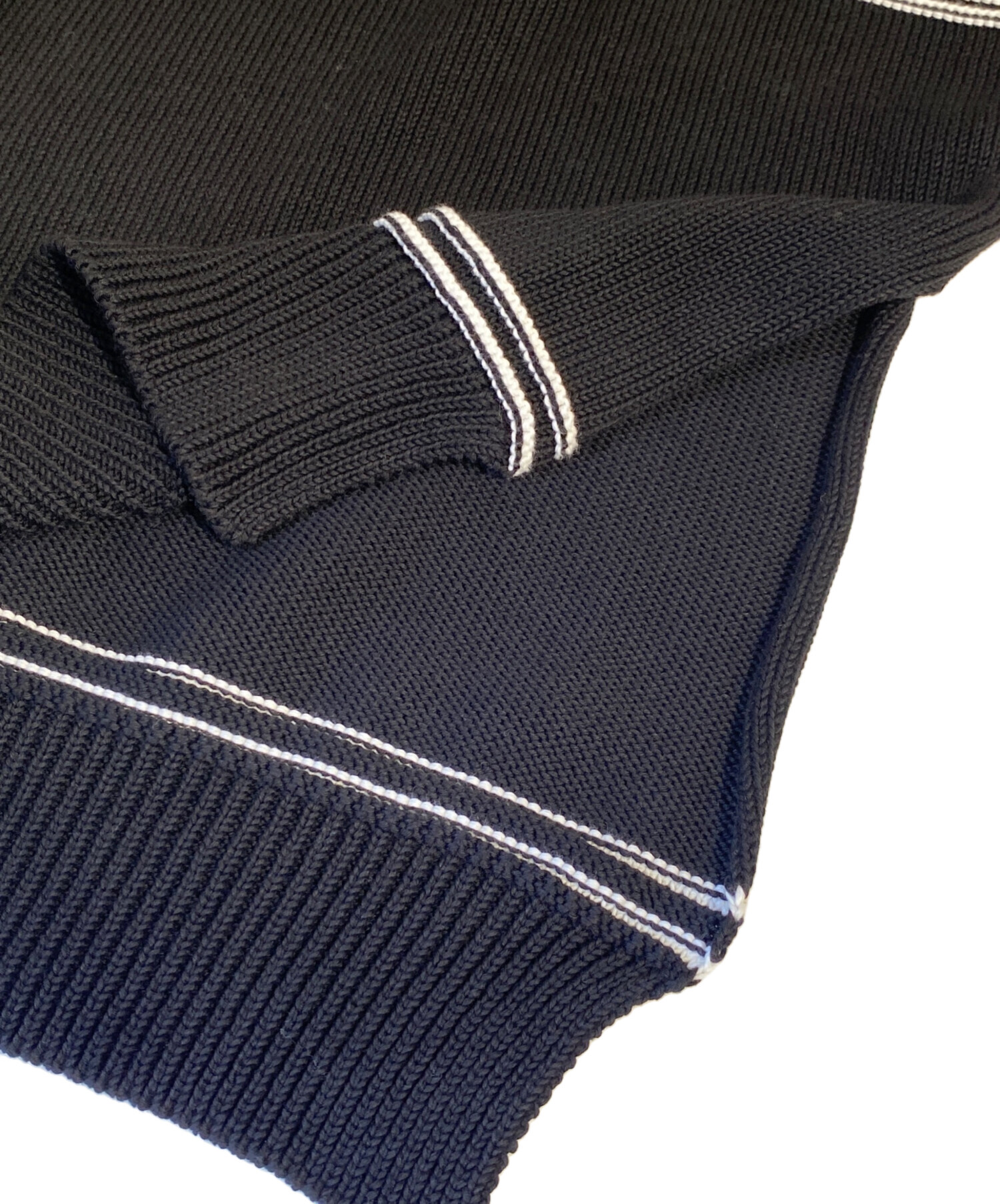 | スタッフコメント | サイドや袖にスリットが施されているニットセーターです。フロントにはロゴがデザインされています。厚みがあり、コットン素材なので、柔らかな着心地です。 |