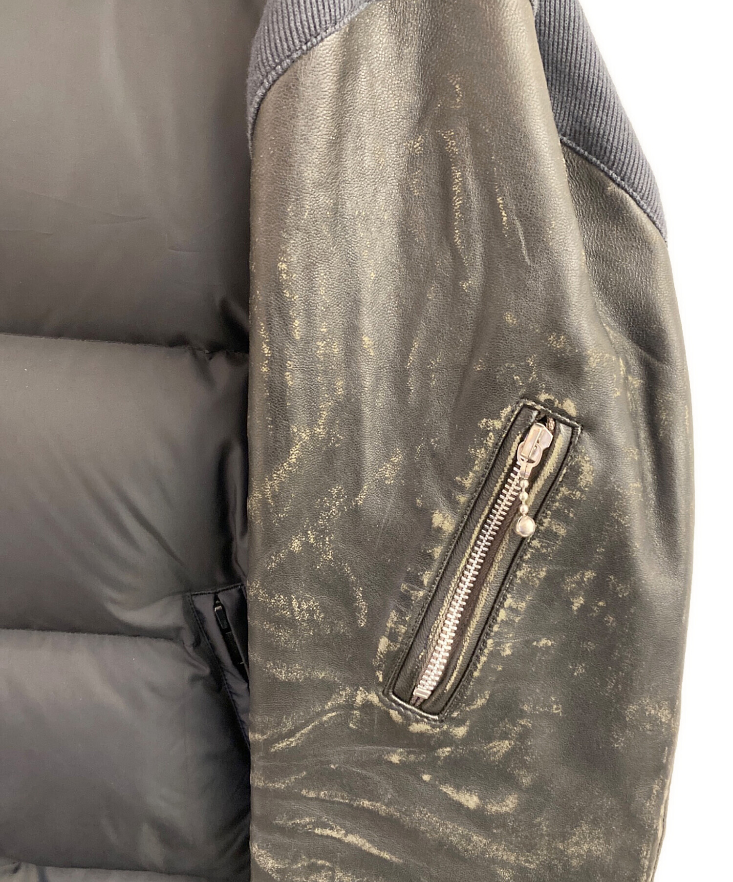 ユーズド加工レザースリーブダウンブルゾン