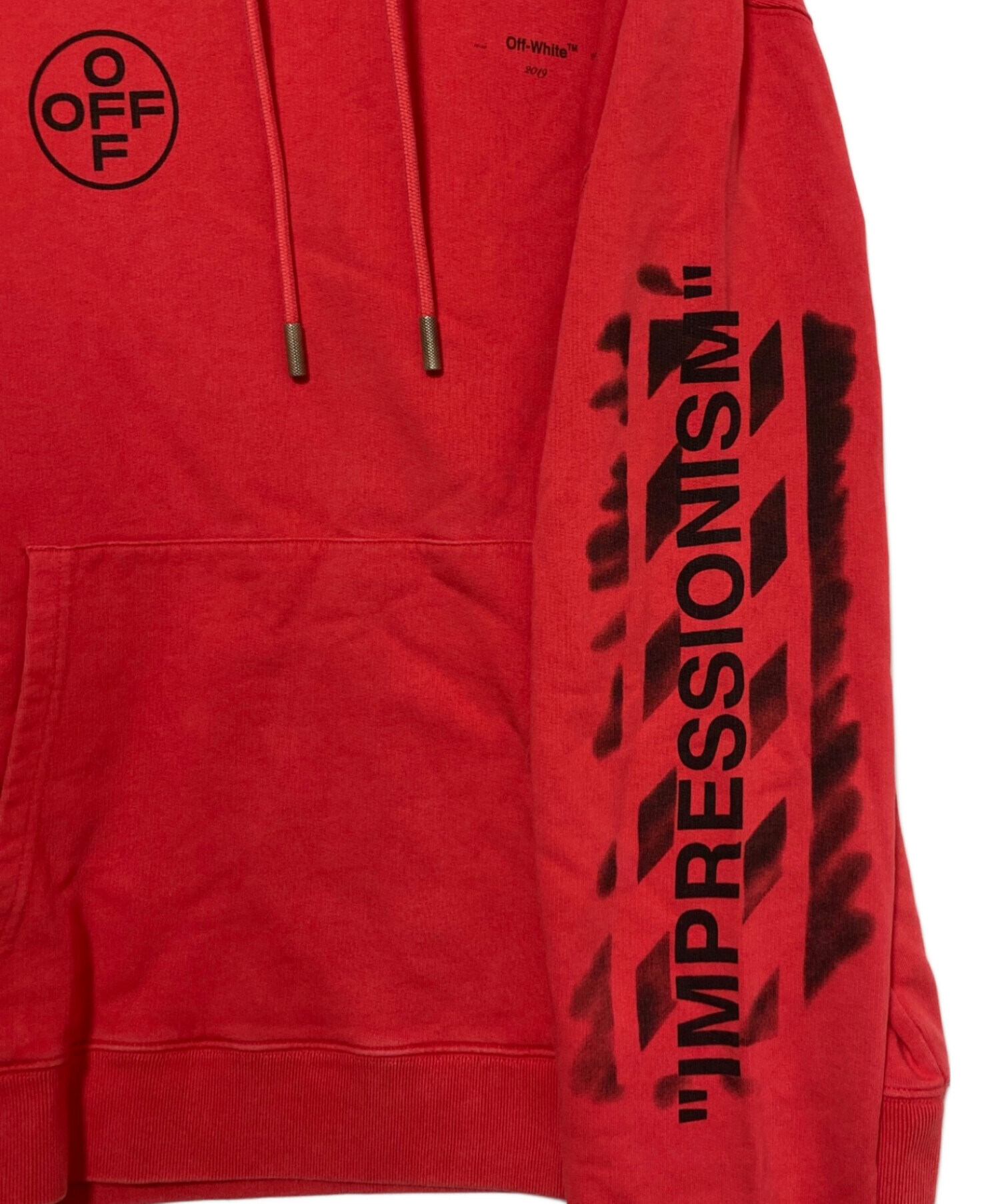 スタッフコメント Off‑Whiteのスプレーアローロゴパーカー。背面にスプレー風の矢印グラフィック、胸にロゴ入り。ストリート感と高級感を兼ね備えたカジュアルフーディです。