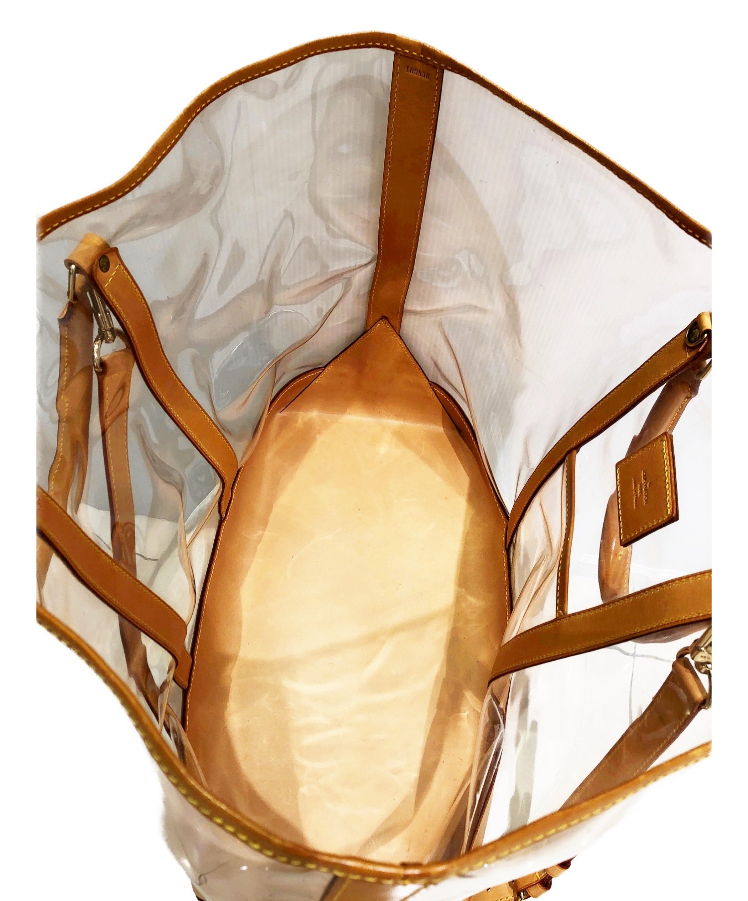 【スタッフコメント】大容量のクリア素材が特徴的なLVのハンドバッグです。ヌメ革とクリア素材のコントラストが印象的です。