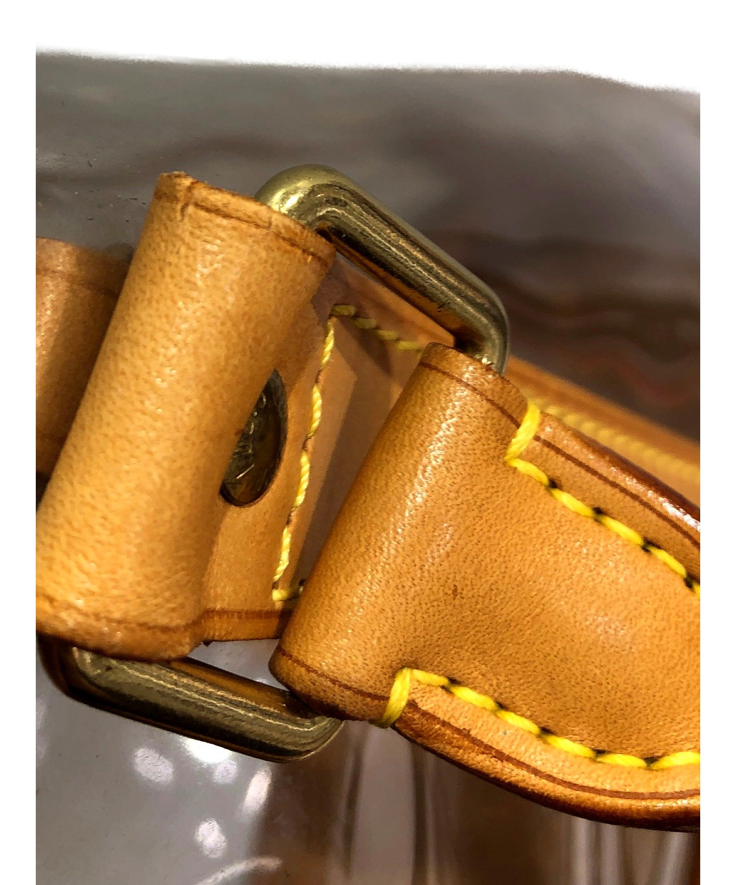 【状態】ハンドル付け根一部キズ、ヌメ革シミ有