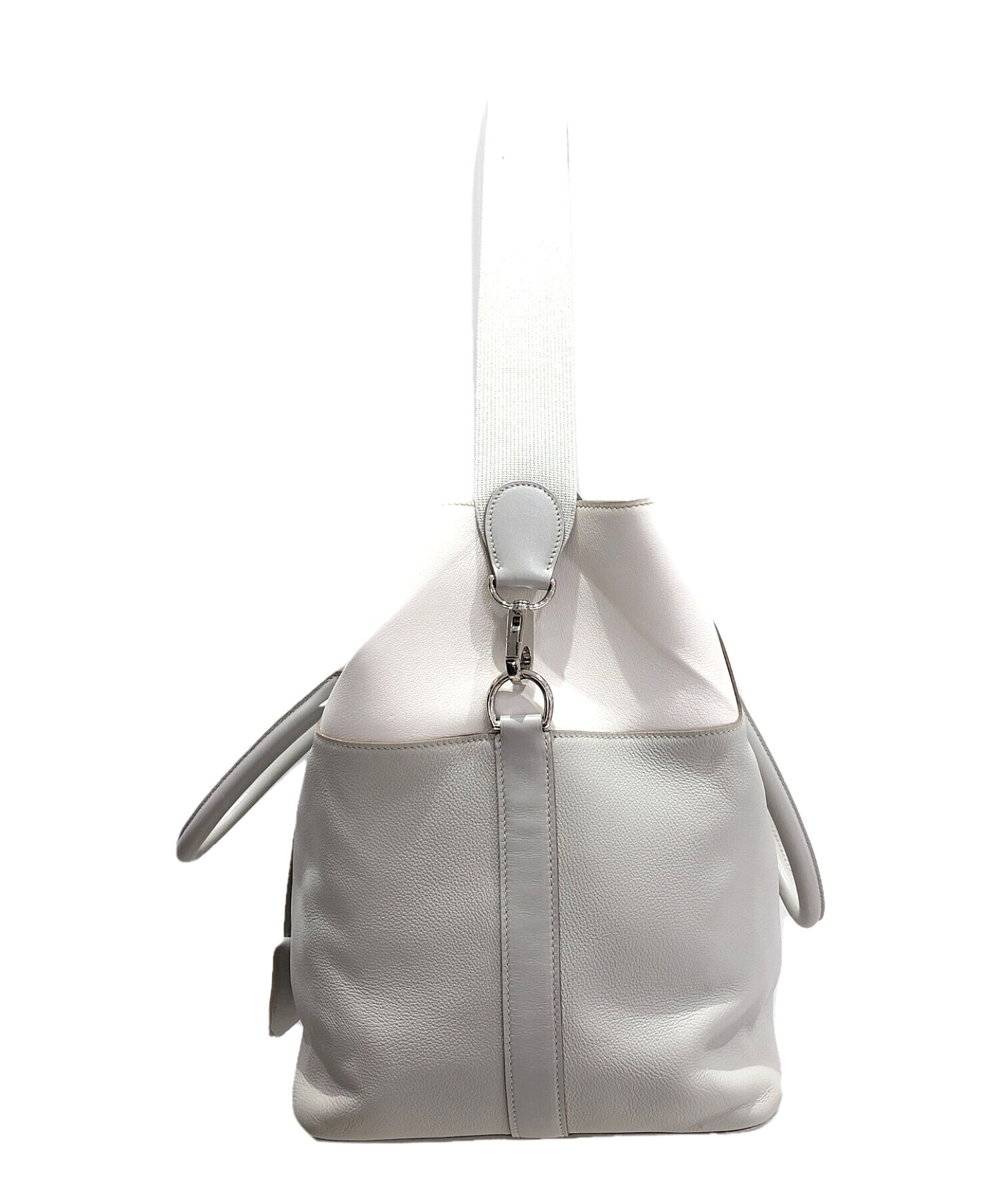 | スタッフコメント | 正方形に近いフォルムが特徴的なハンドバッグです。間口が広くマチ幅があり、収納力に優れています。付属のストラップでショルダーバッグとしてもお使いいただけます。 |