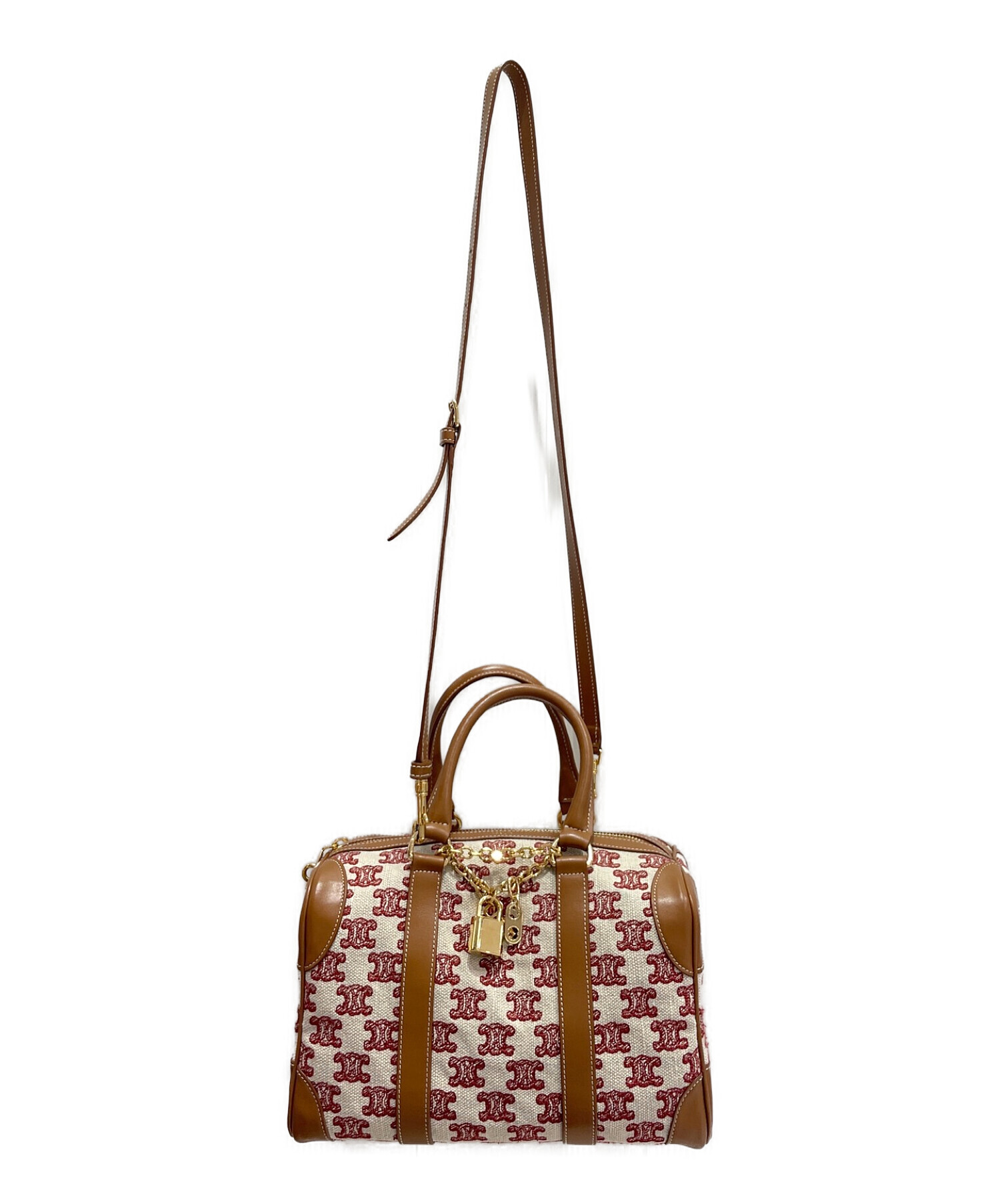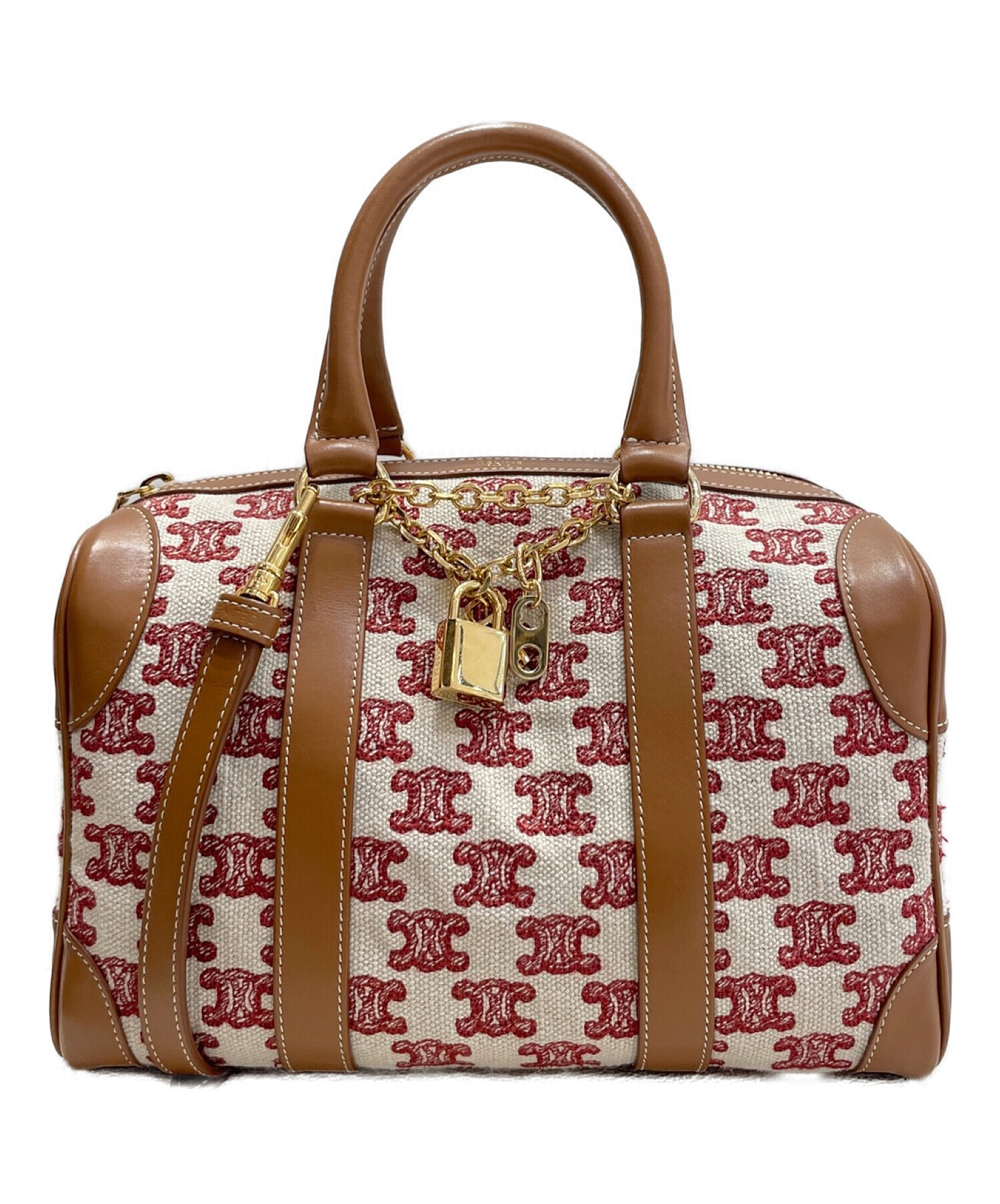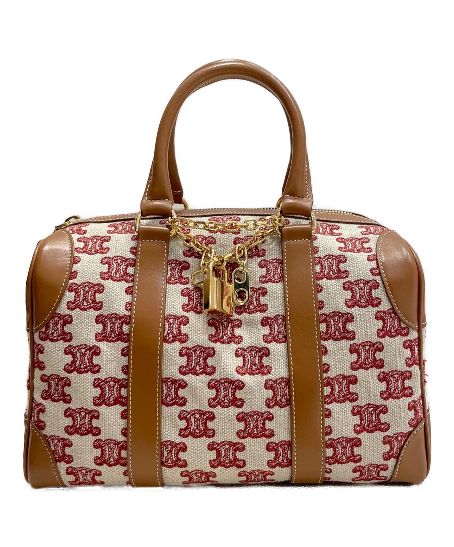 | スタッフコメント | トリオンフ柄が表面に刺繍されたボストンバッグでございます。フロントにはキーロックをはじめとするチャームとチェーンの装飾がデザインされております。サイズはミニで、持ち運びに便利なコンパクトなサイズ感が魅力です。 |