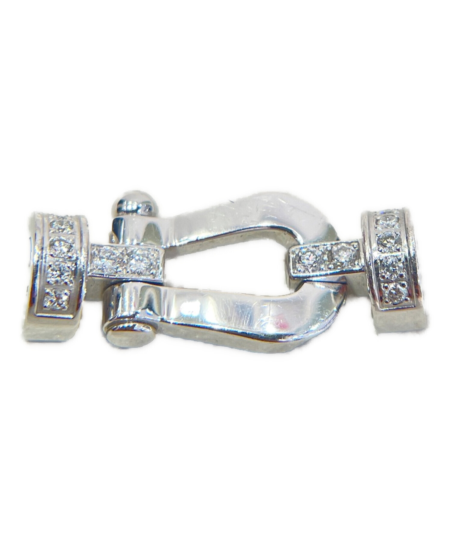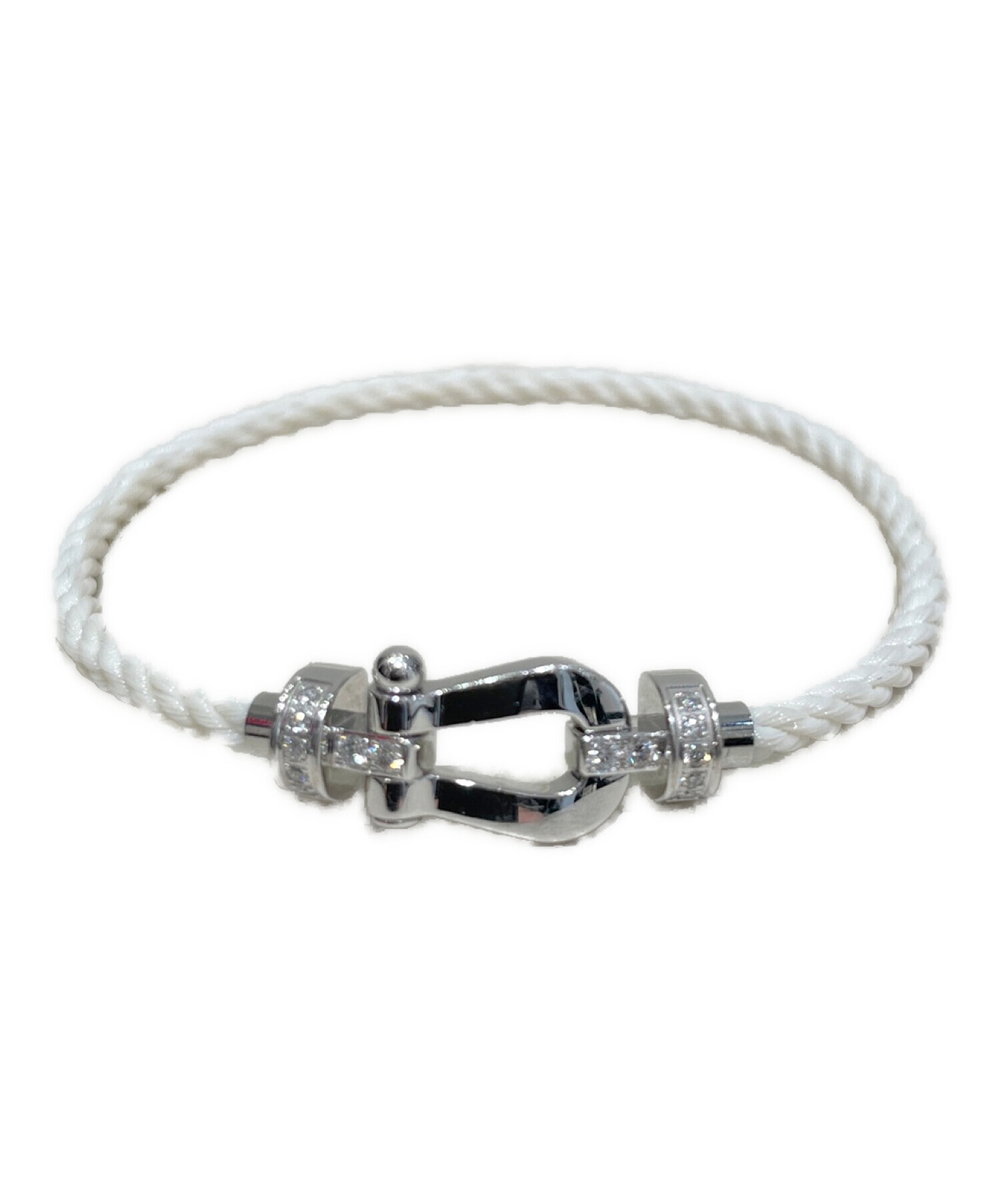 | スタッフコメント | 定番人気のフォース10コレクションからハーフダイヤ仕様のケーブルブレスレットでございます。ヨットのシャックル型のモチーフが特徴的で配置されたダイヤモンドは美しく輝き、存在感と高級感を演出しております。身に着けるだけで腕元を華やかに仕上げてくれるおススメのアイテムです。 |