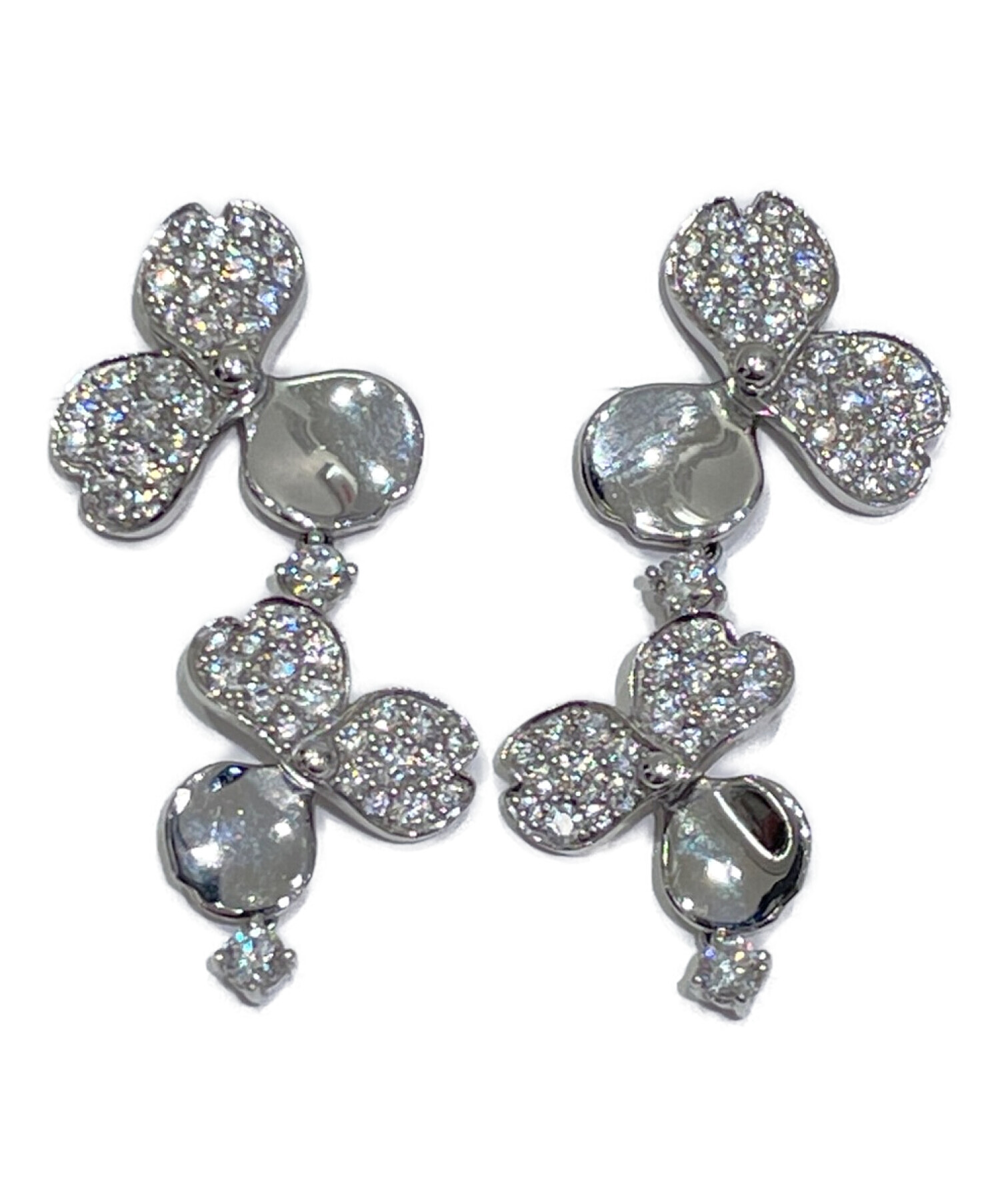 | スタッフコメント | 煌びやかなダイヤをフラワーの上に配置し、ラグジュアリーな雰囲気を演出しています。存在感があり、顔周りをグッと華やかにしてくれるピアスは、パーティーシーンはもちろんデイリーでも活躍してくれます。 |