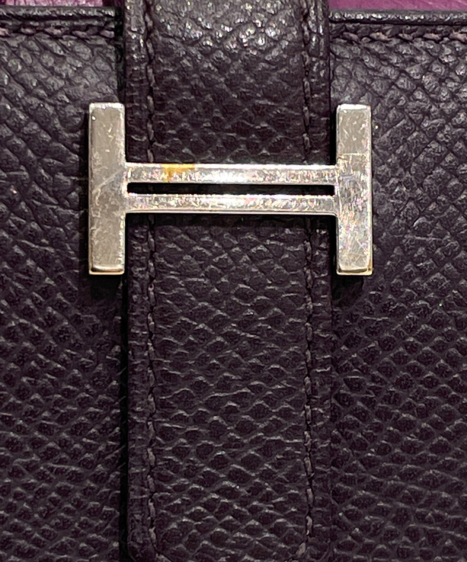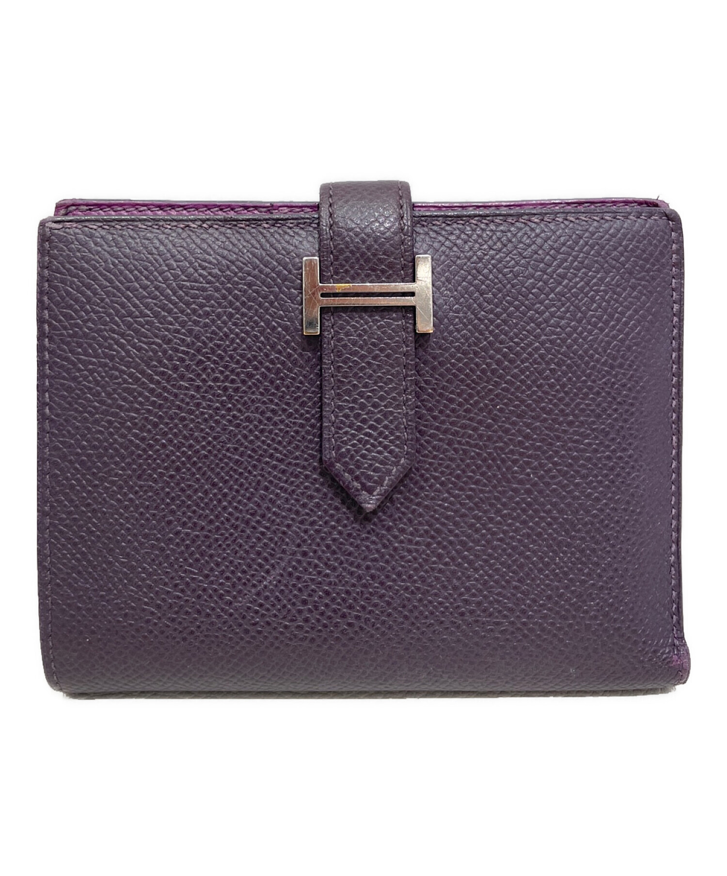 | スタッフコメント | 深みのあるパープルカラーのベアンコンパクト、お財布でございます。手のひらサイズで素材はエプソンを使用している為軽くて持ち運びするのに最適な仕上がりとなっております。上品な光沢感が有り、使い込むごとにレザーの質感の変化をお楽しみいただけます。 |