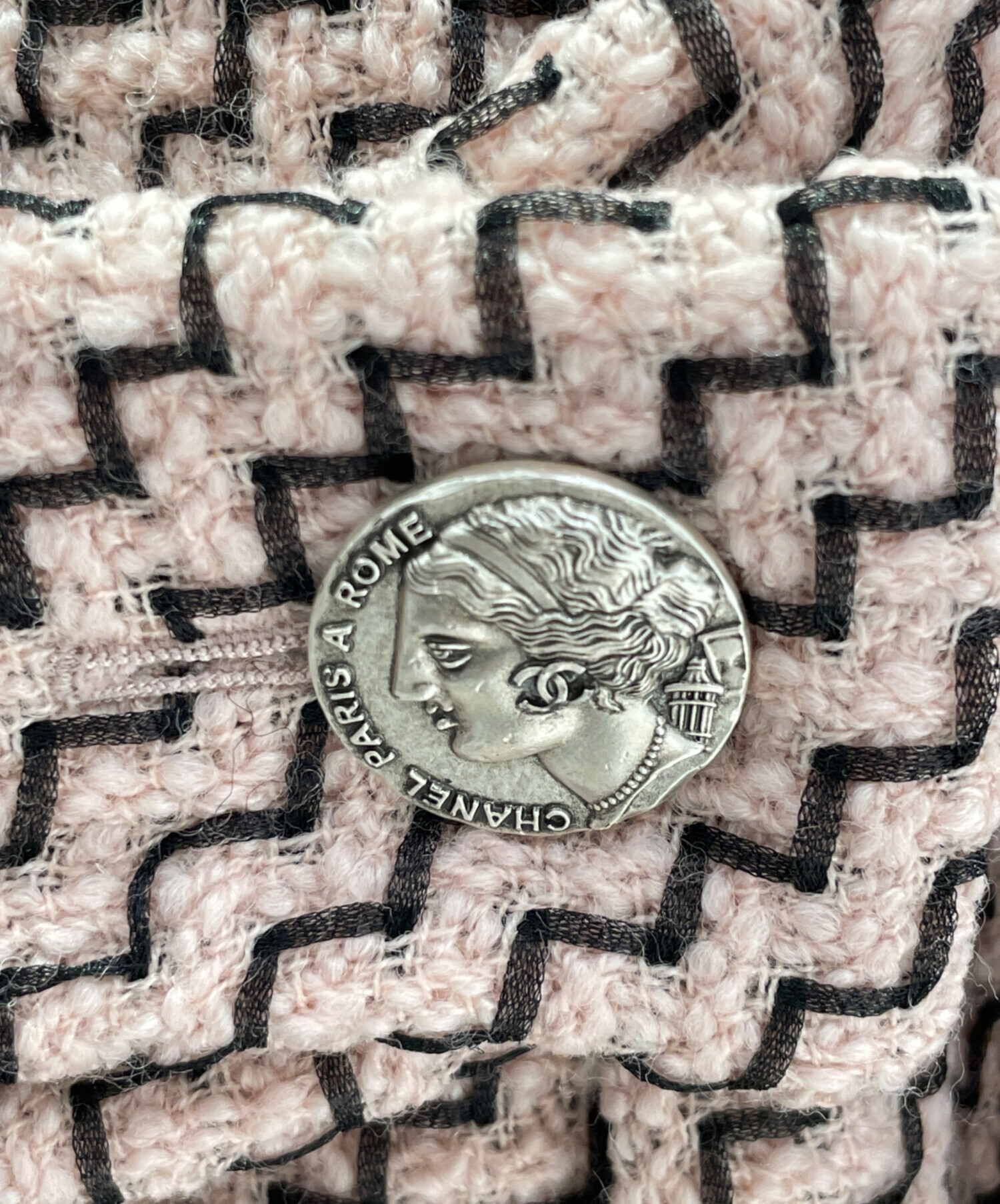 スタッフコメント やわらかなピンクカラーにブラックのラインが映える、エレガントな印象のCHANELのツイードコートでございます。「パリ イン ローマ」コレクションならではの、特別仕様のシルバーのココマークがあしらわれており、フェミニンなカラーリングの中にクラシカルな輝きを添えています。女性らしさとシャネルらしい品格を兼ね備えた、魅力あふれる一着です。
