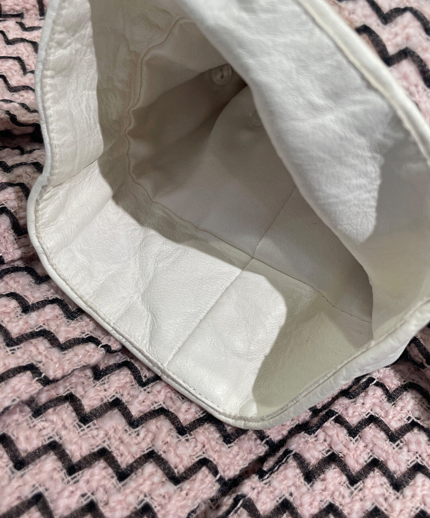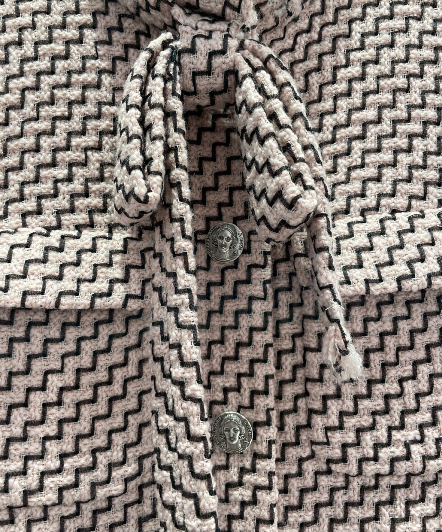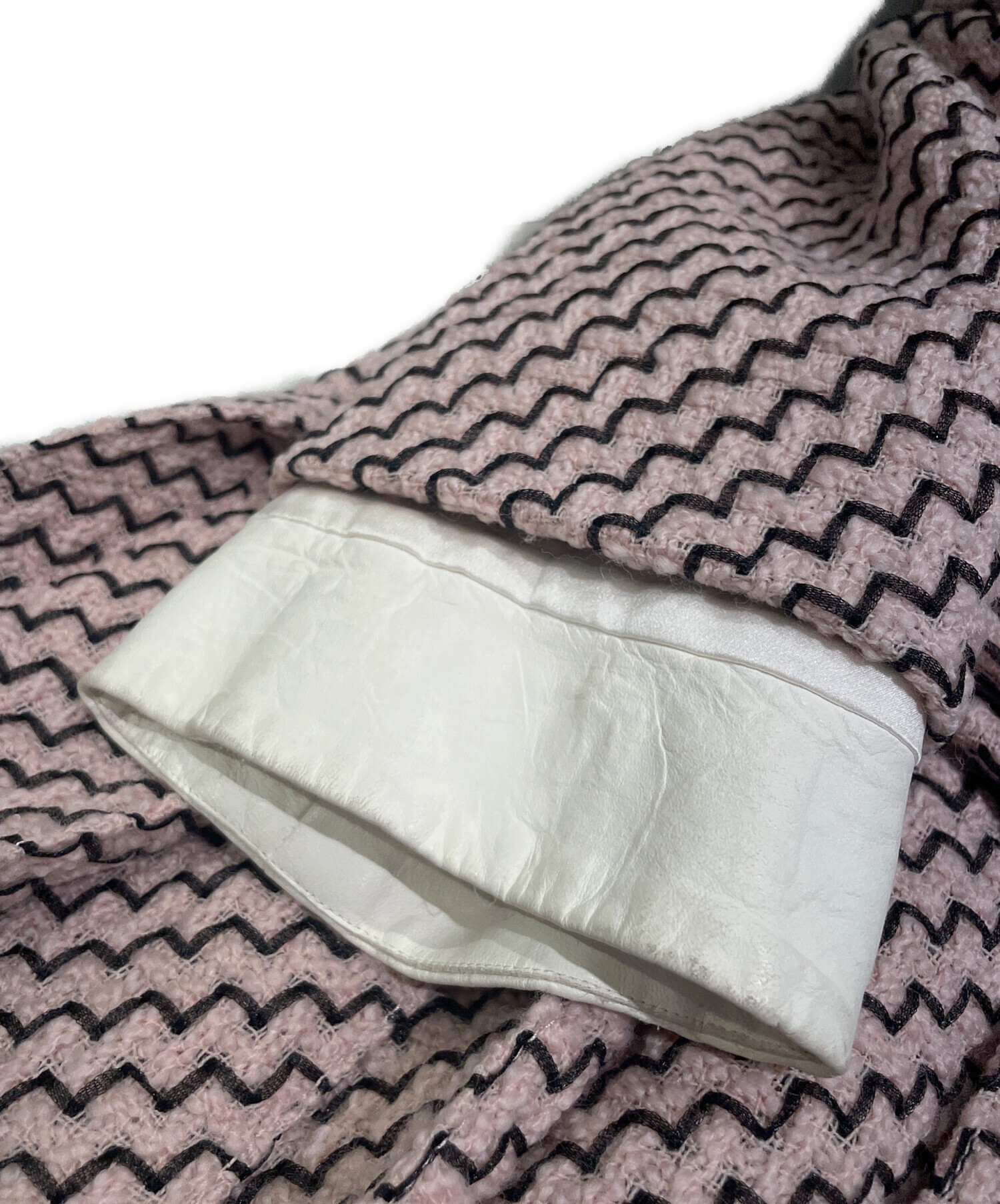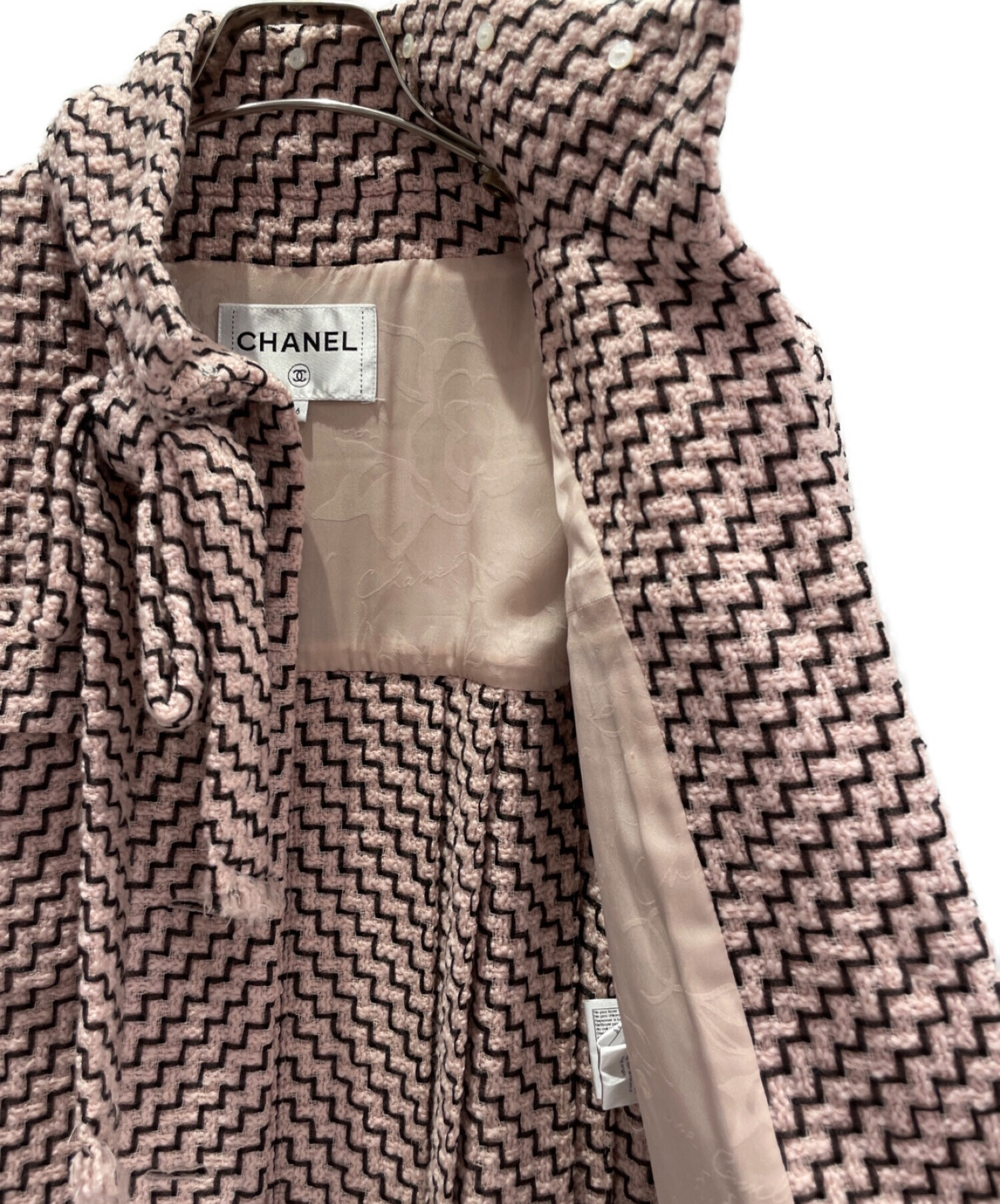 | スタッフコメント | 柔らかいピンクのカラーと、首元のリボンや裾のプリーツがキュートなシャネルのツイードロングコートでございます。フロントやバッグにあしらわれたシルバーカラーの大きめのボタンがアクセントとなり、甘くなりすぎず1枚で主役になるアイテムです。 |
