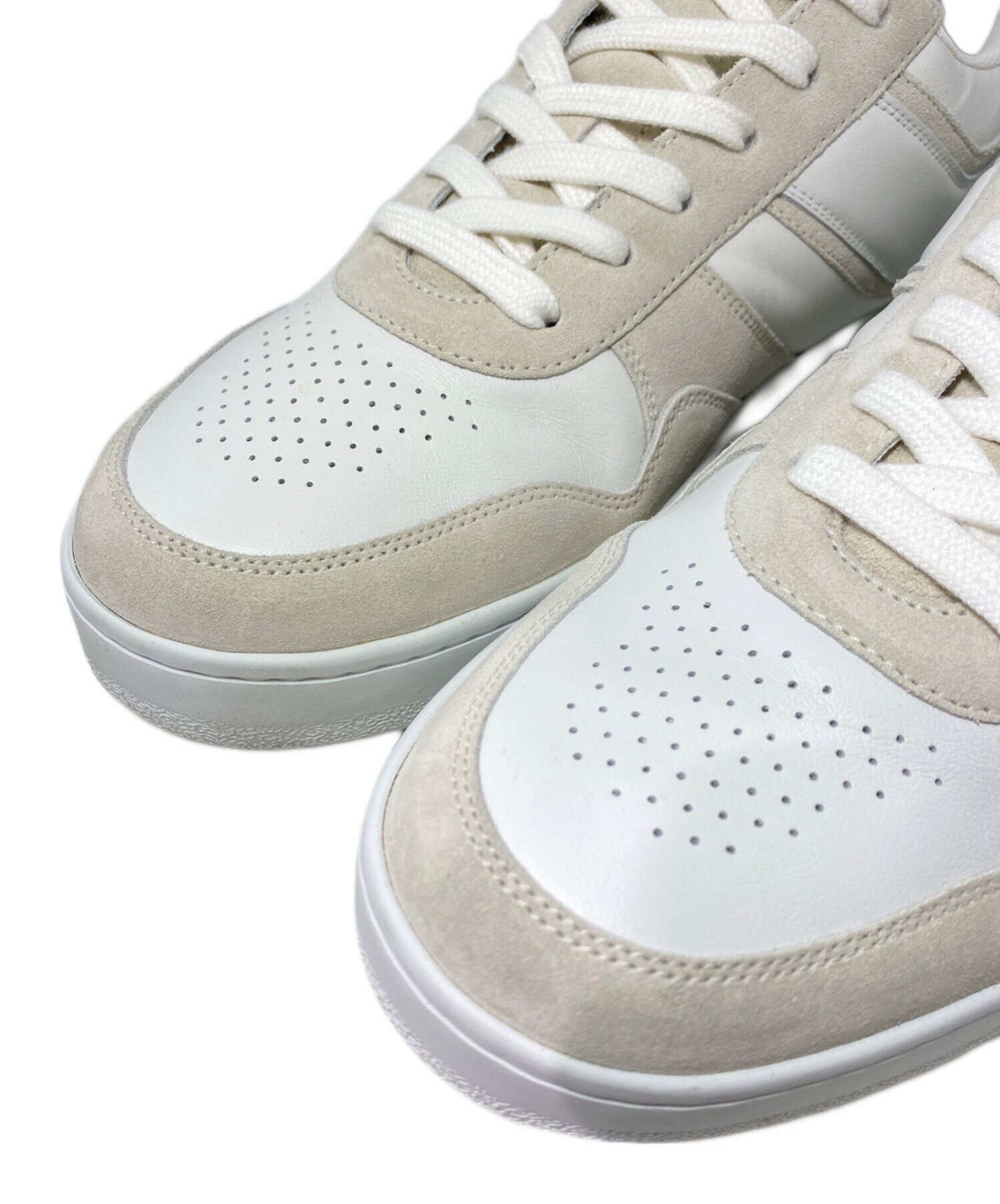 | スタッフコメント | ホワイトベースにベージュのカーフスキントリムが組み合わさったローカットスニーカーでございます。シンプルでどんなコーディネートにも合わせやすくデイリーユースにオススメな一点です。 |