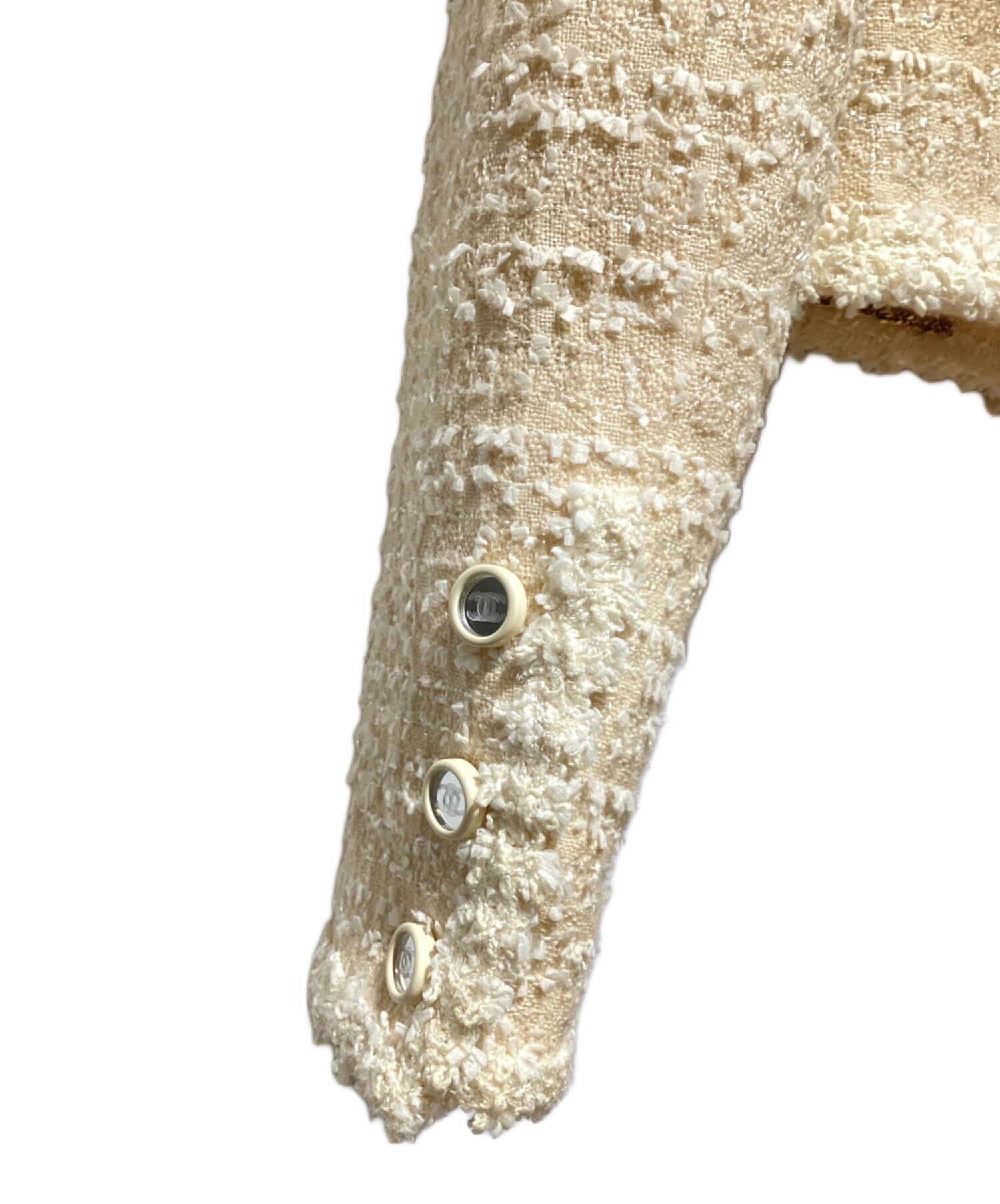 | スタッフコメント | 鏡面ボタンにシャネルのアイコニックなココマークがあしらわれ、高級感を演出しているツイードジャケットでございます。スカートやパンツなど、様々なアイテムと合わせやすく、幅広いコーディネートをお楽しみいただけるアイテムです。 |