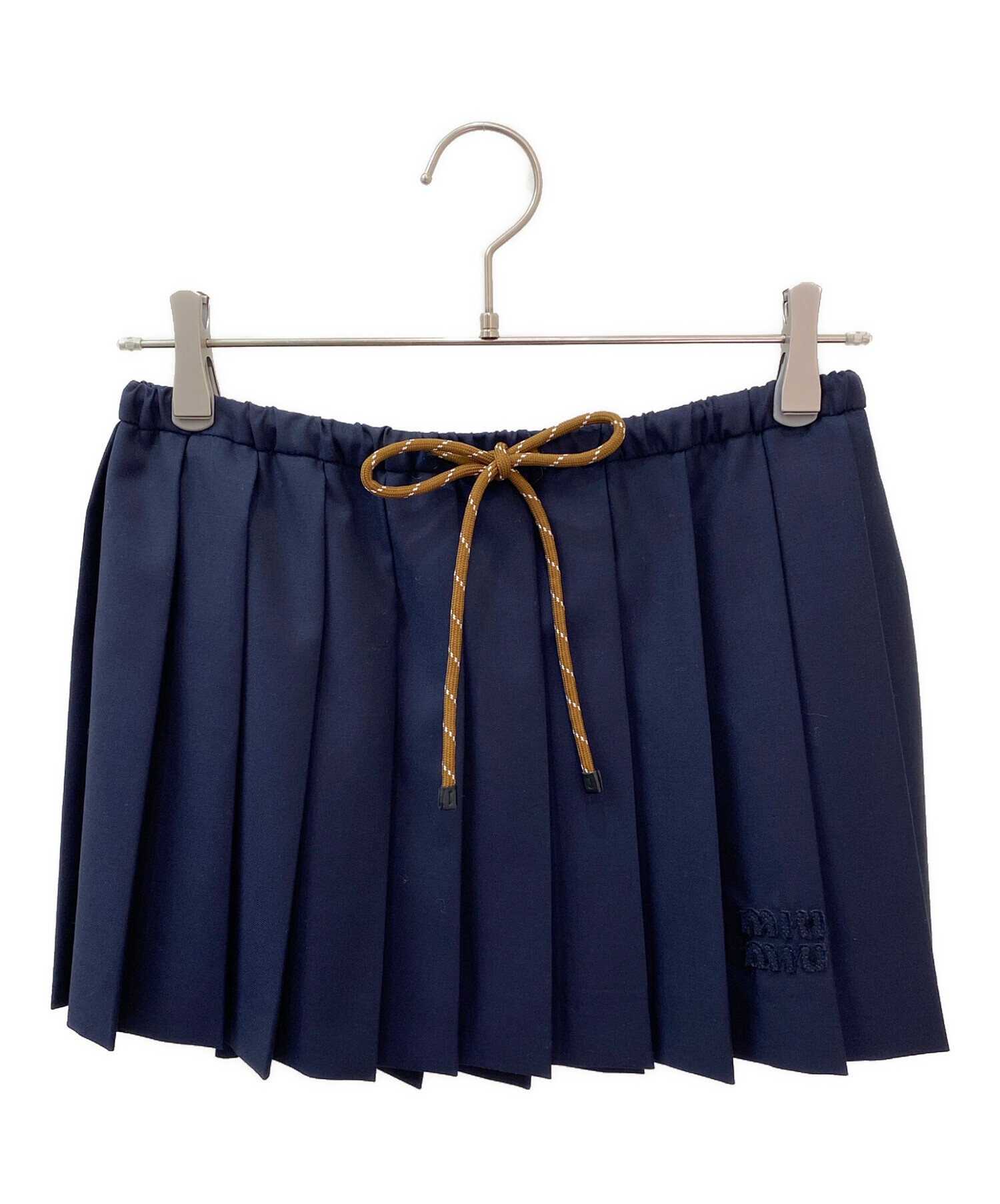 | スタッフコメント | ネイビーのプリーツにMIU MIUのブランドロゴがアクセントになります。プレッピーなスクールスタイルに活躍するアイテムでございます。スカート単品で履くのはもちろん、パンツと合わせたりと様々な着まわしをお楽しみいただけます。 |