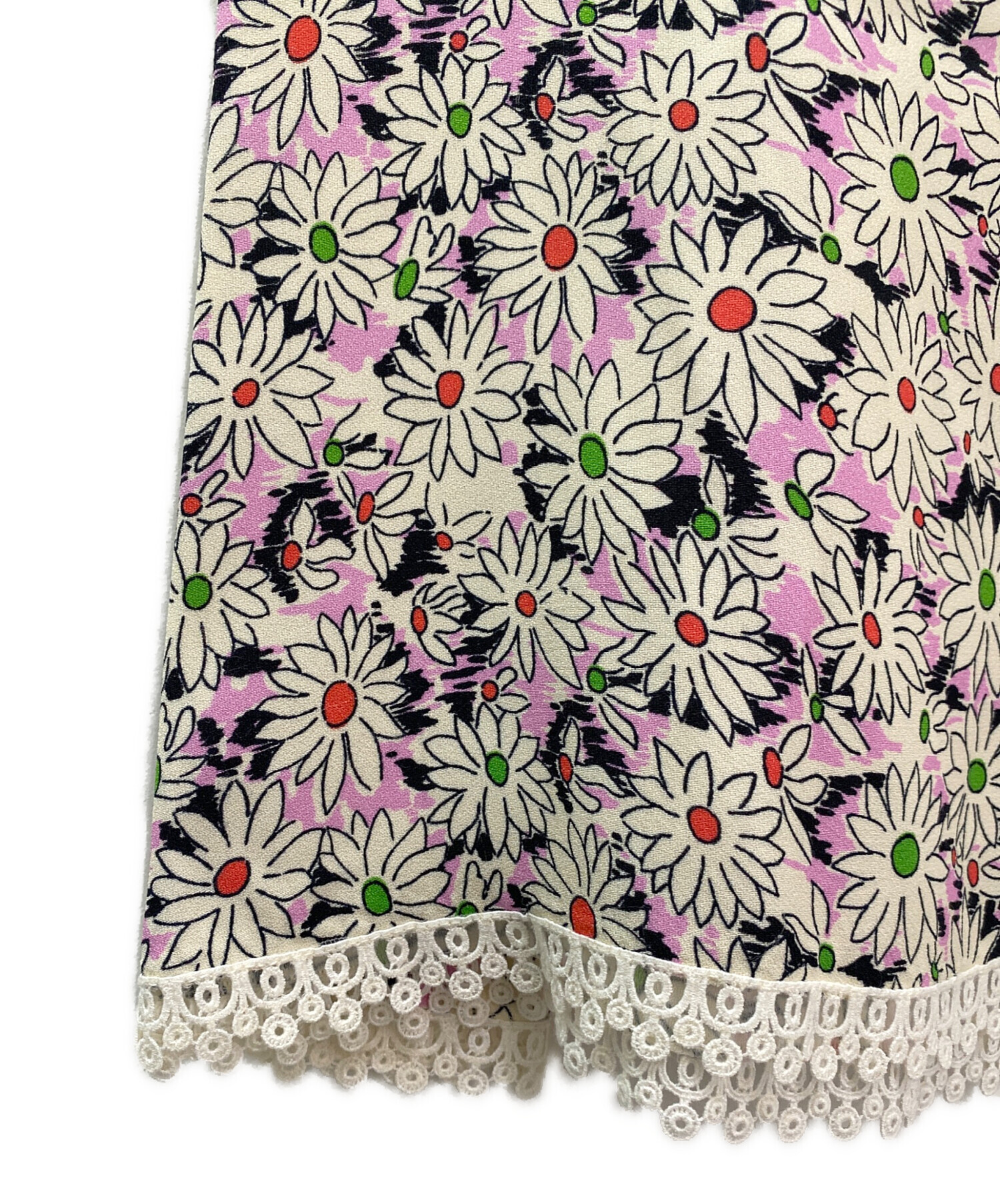 | スタッフコメント | レーヨン100%の柔らかな生地に鮮やかなフラワープリントが浮かび、女性らしく軽やかな印象になります。裾のレースがさり気ないアクセントになり、MIU MIUらしいフェミニンな世界観を感じさせてくれます。 |