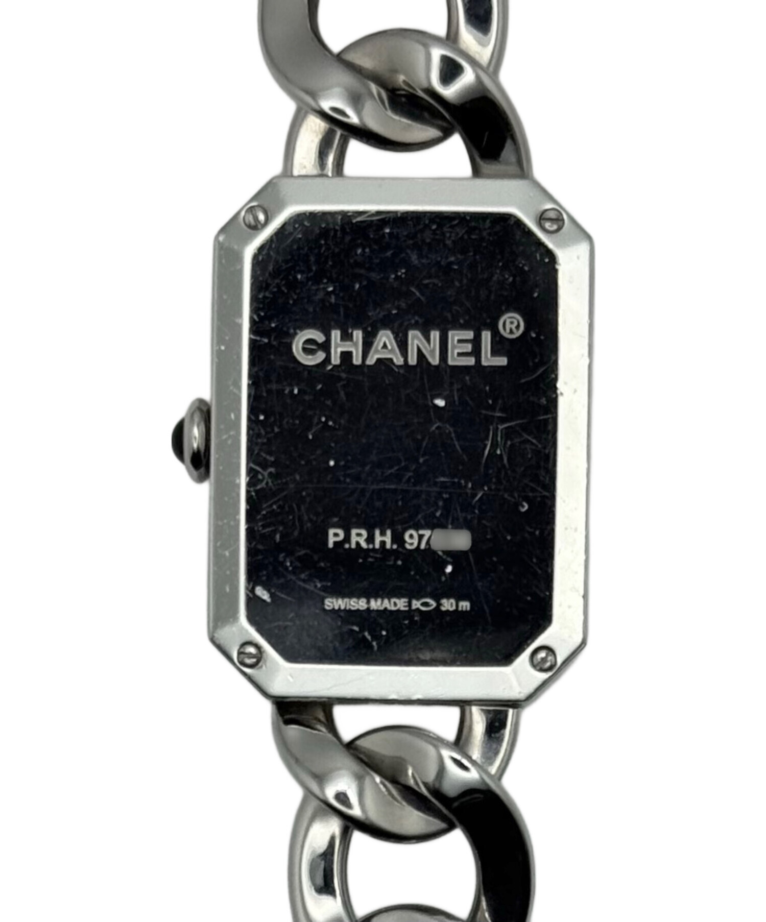| スタッフコメント | シャネルのプルミエール メタル チェーンです。エレガントな八角形のケースに、アイコニックなチェーンのデザインでエレガントかつ存在感のある魅力的な時計です。シンプルな文字盤で、フォーマルな場面からカジュアルな日常使いまで、幅広く活躍します。 |
