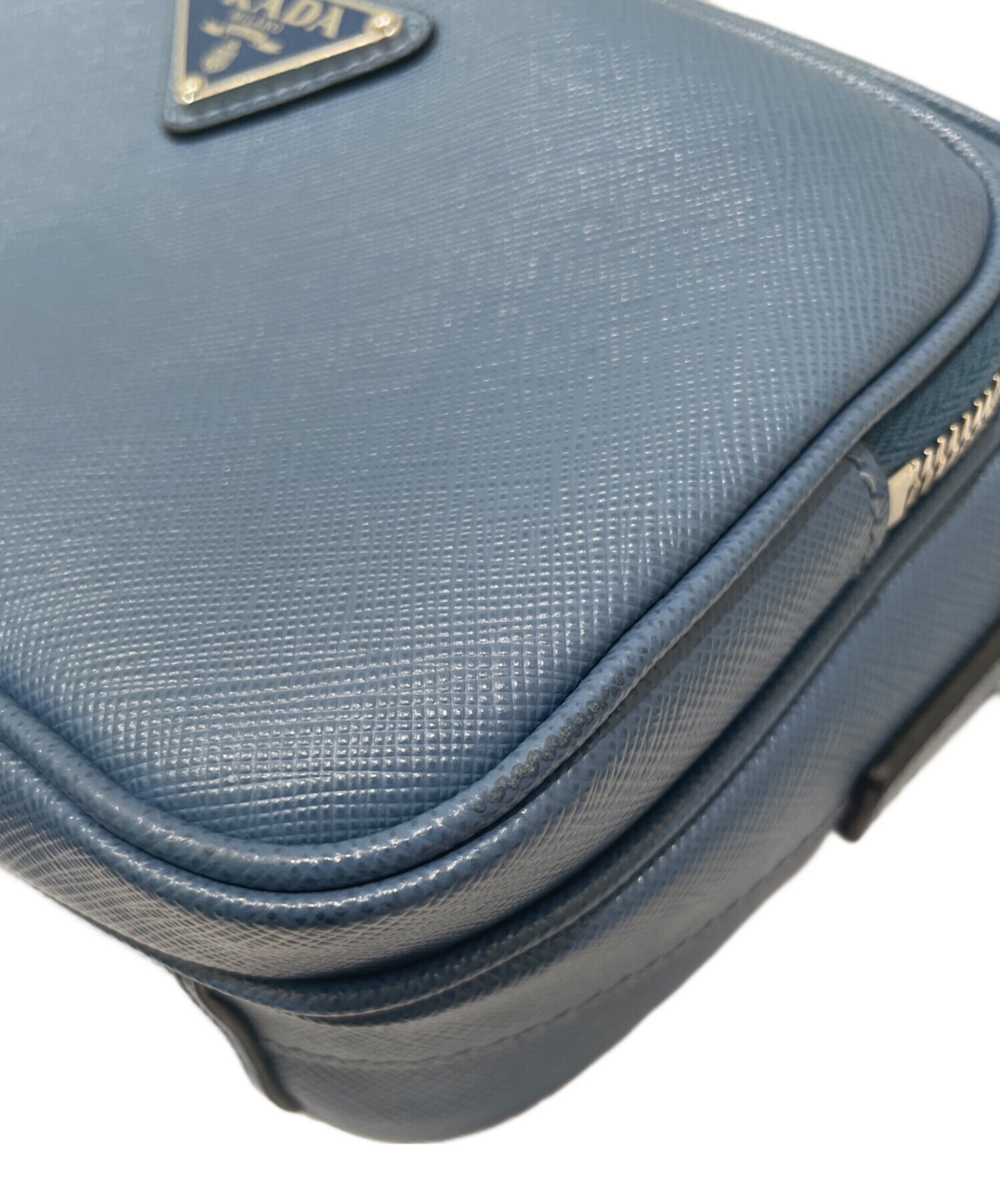 | スタッフコメント | PRADAのサフィアーノレザーは耐久性に優れ、傷がつきにくい特性があるので、日常使いに適しており、長期間美しい状態を保つことができます。スカイブルーは、明るく爽やかな色合いで、コーディネートにアクセントを加えることができるので、大変おすすめでございます。 |