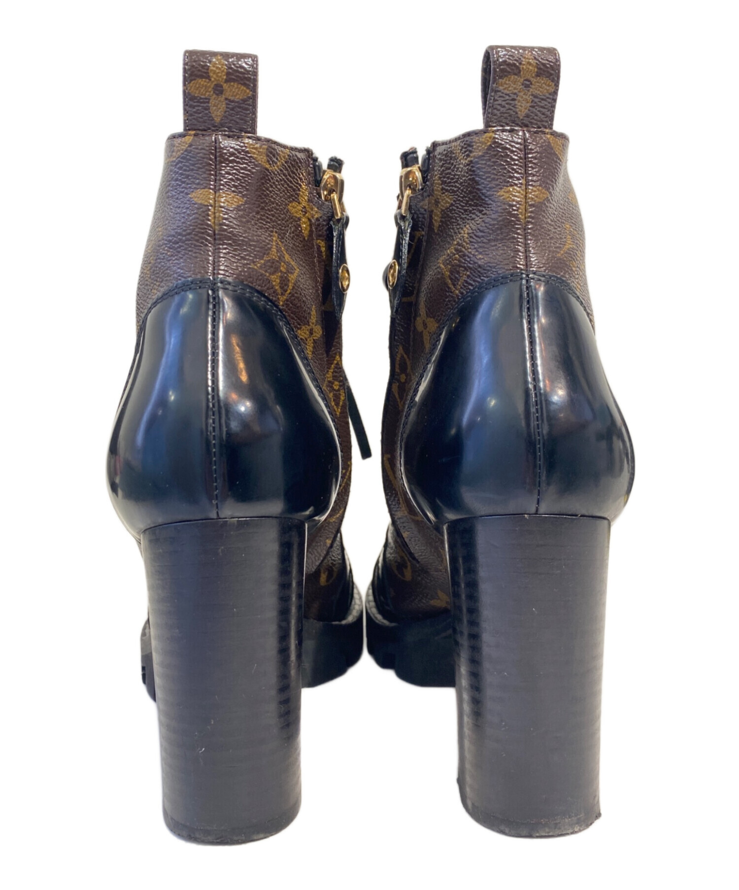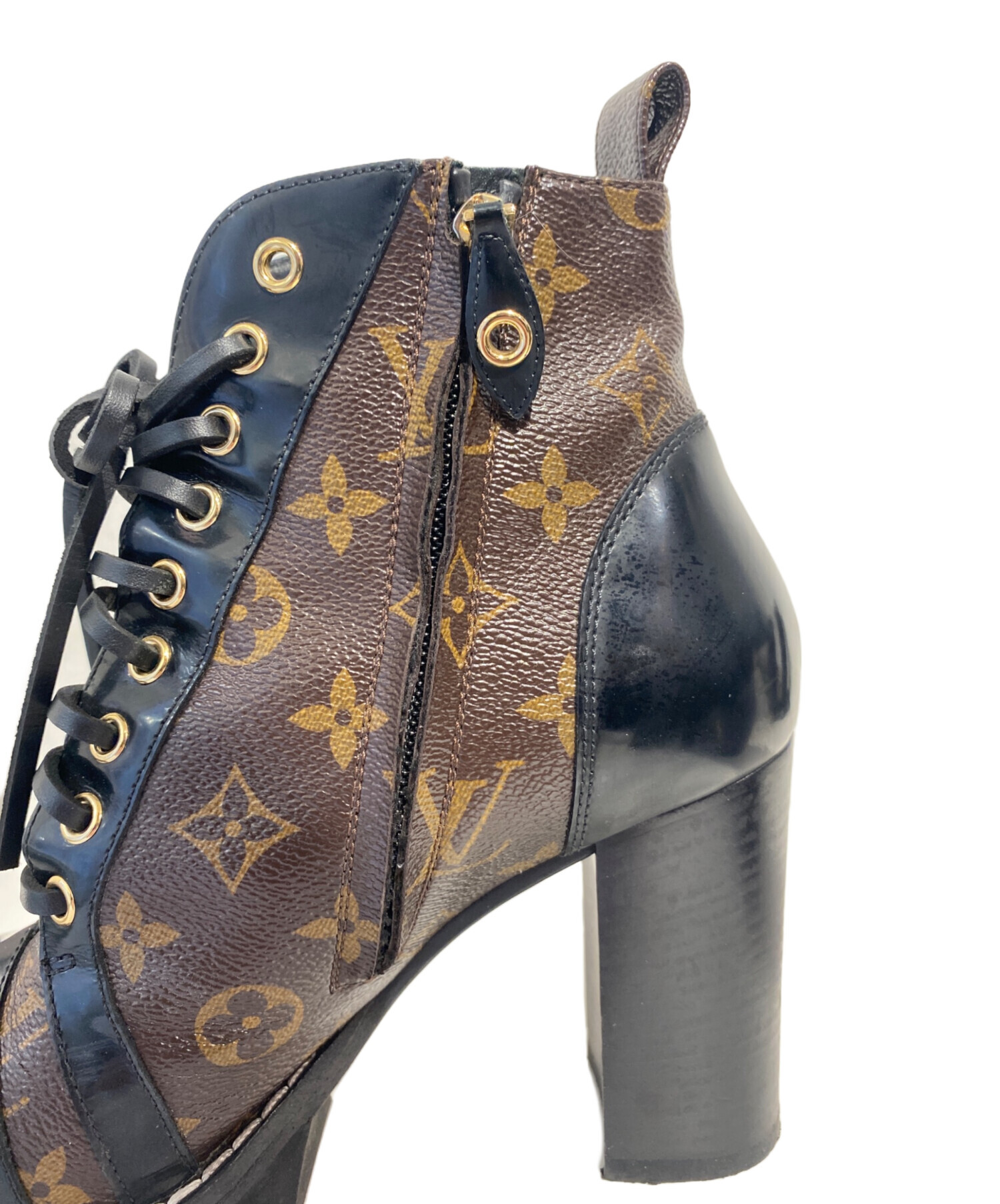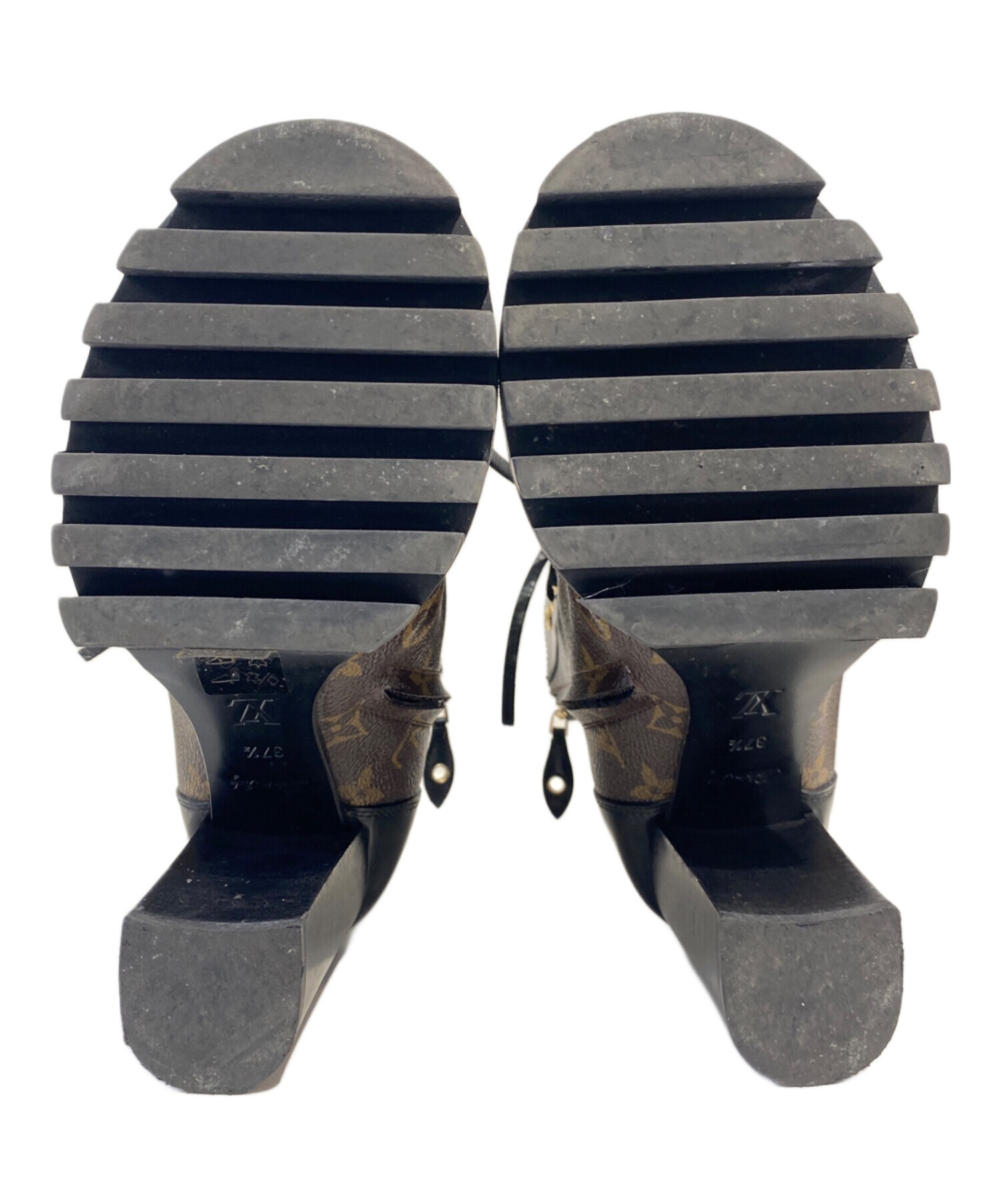 | スタッフコメント | ブランドを象徴するモノグラム・キャンバスとPVCレザーのコンビーションが魅力のラグジュアリーなレースアップブーツでございます。洗練されたブラック×ブラウンの配色に、タフで存在感のあるトレッドラバーソールを採用し、見た目の美しさだけでなく、滑りにくく快適な履き心地を実現した一足です。 |