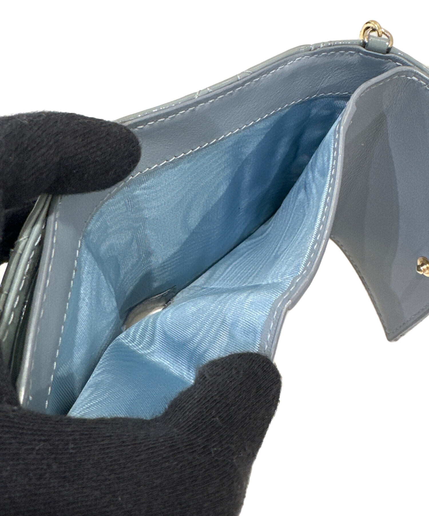 | スタッフコメント | クリスチャン・ディオールの三つ折り財布です。カナージュステッチが全面に施され、立体的でエレガントな印象になります。小ぶりなバッグにすっきり収まるサイズ感で、日常使いに適した機能性とデザイン性を両立しています。フロントのメタルチャームがアクセントがあり華やかです。 |
