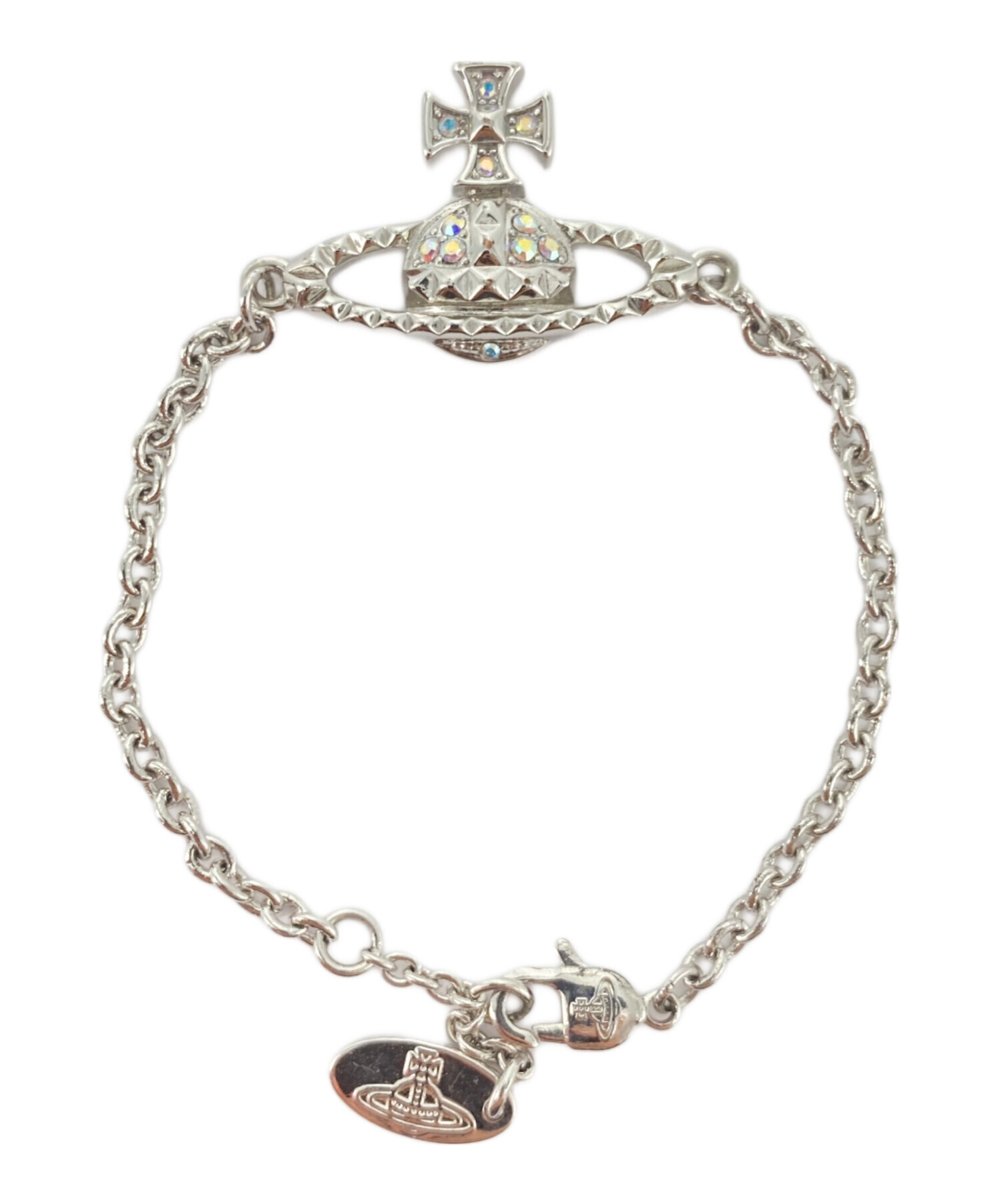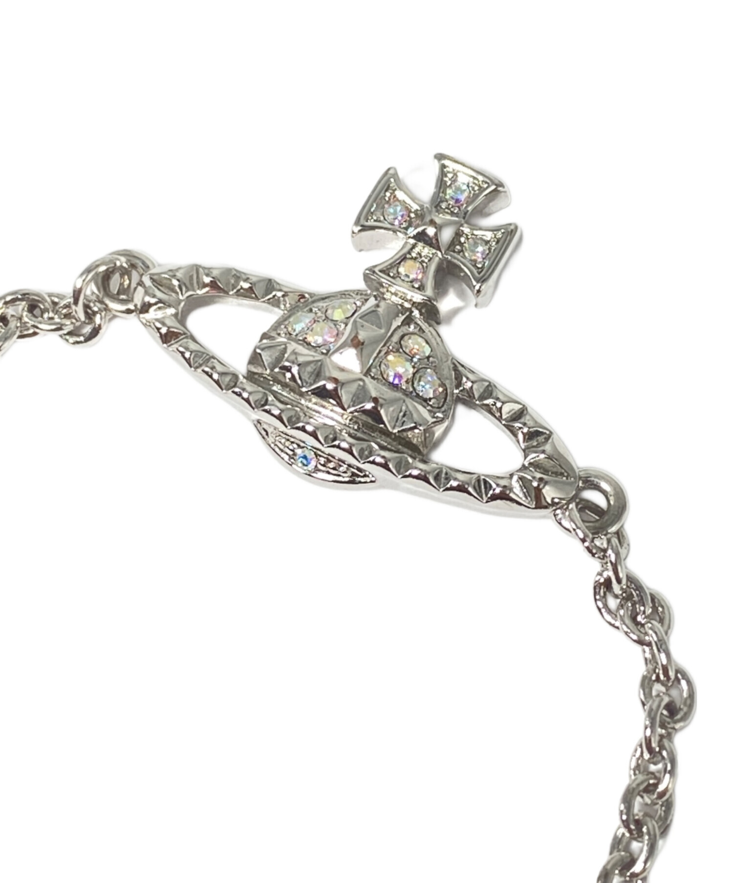 | スタッフコメント | ブランドのアイコニックなモチーフのオーブにラインストーンをあしらったシルバーブレスレットでございます。ラインストーンの煌めく輝きが手元に華やかさをプラスします。普段使いから特別なシーンまで幅広くお使いいただけます。 |