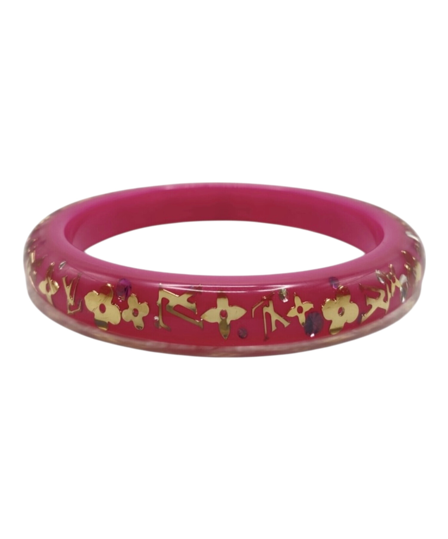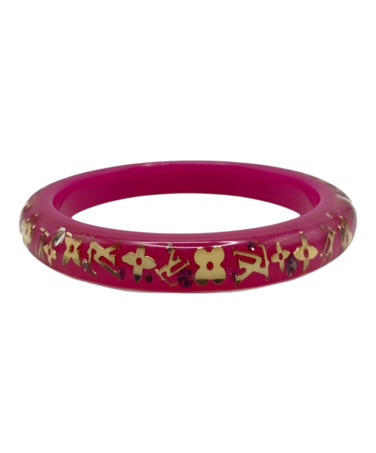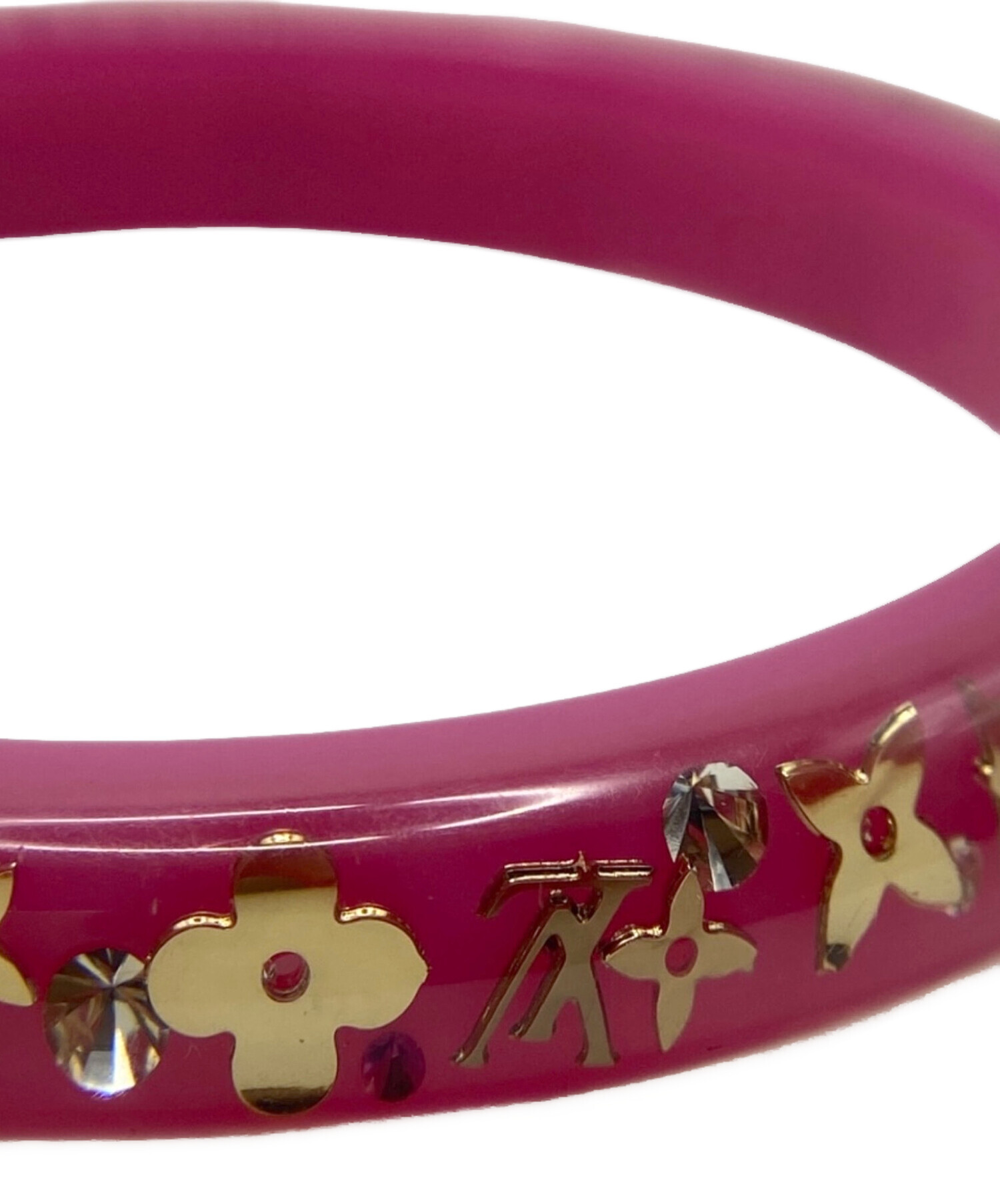 | スタッフコメント | 柔らかなピンクのレジンにモノグラムフラワーを閉じ込めた可憐なデザインが、手元に品よく映えるアクセントでございます。軽やかな着用感でデイリーに取り入れやすく、カジュアルからフェミニンな装いまで幅広く活躍する万能バングルでございます。 |