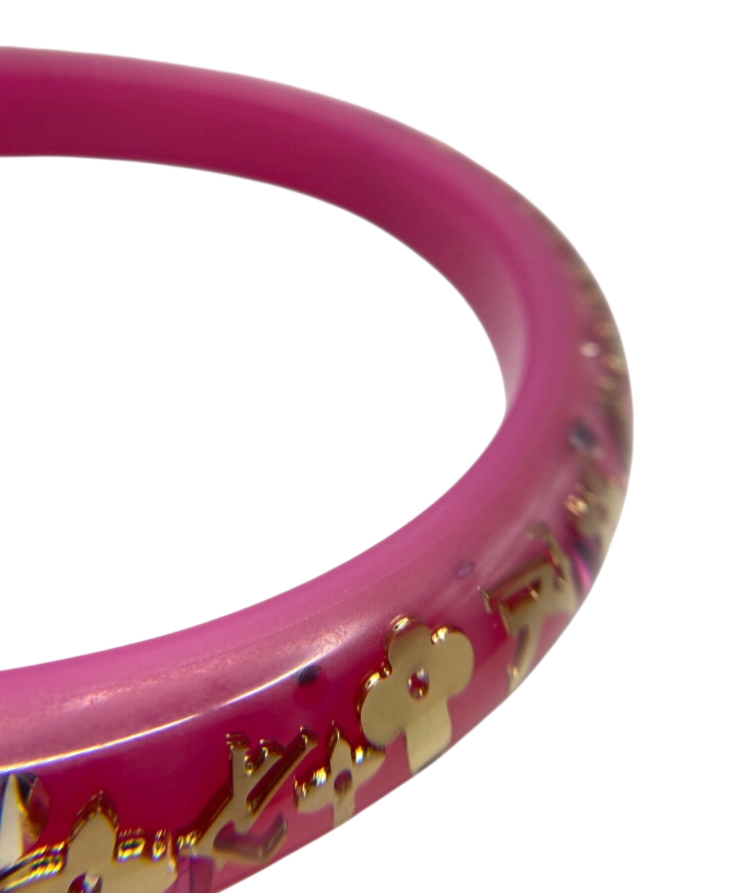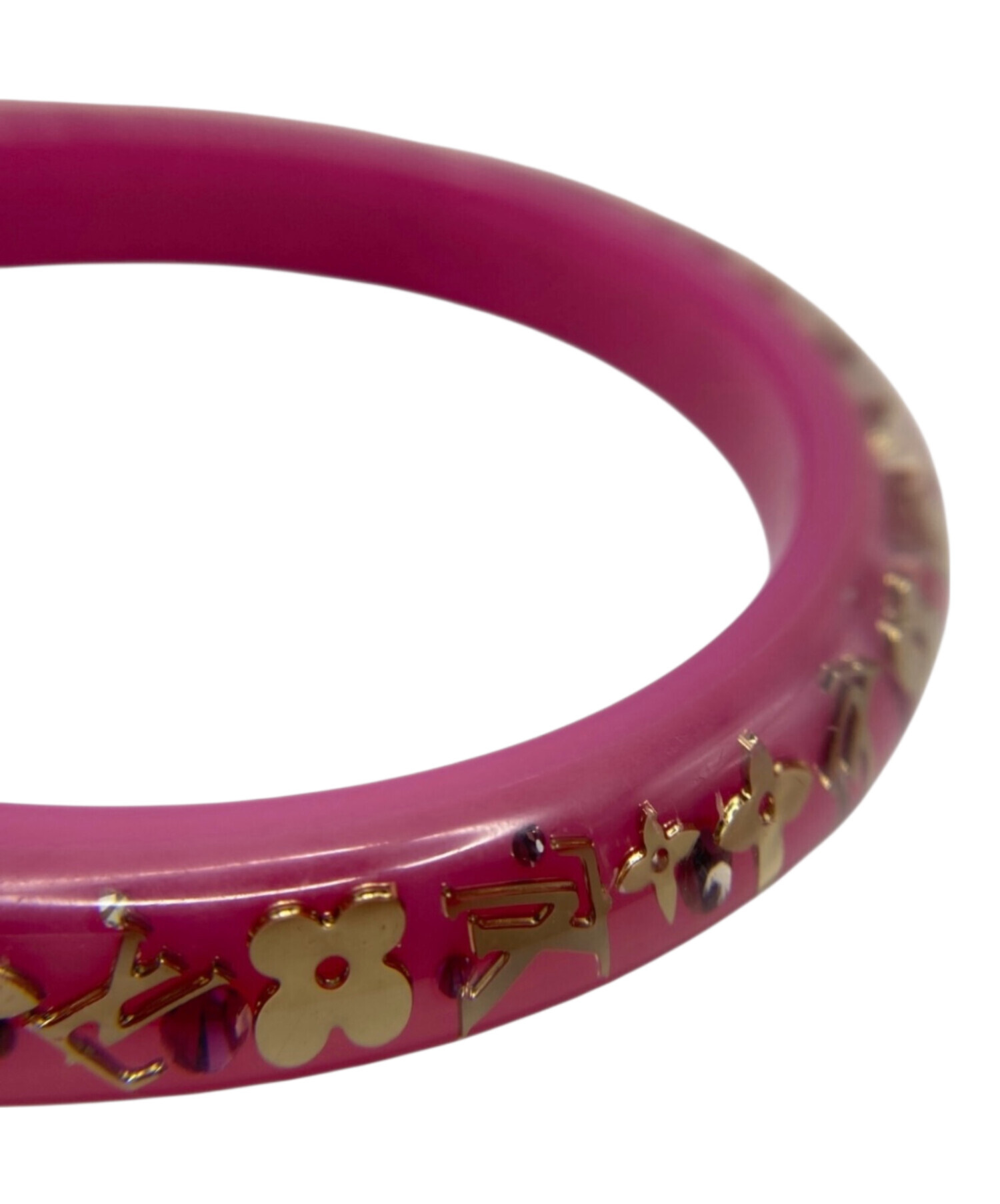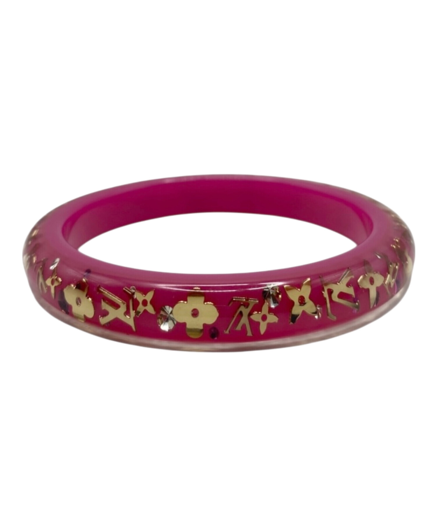 | スタッフコメント | 柔らかなピンクのレジンにモノグラムフラワーを閉じ込めた可憐なデザインが、手元に品よく映えるアクセントでございます。軽やかな着用感でデイリーに取り入れやすく、カジュアルからフェミニンな装いまで幅広く活躍する万能バングルでございます。 |