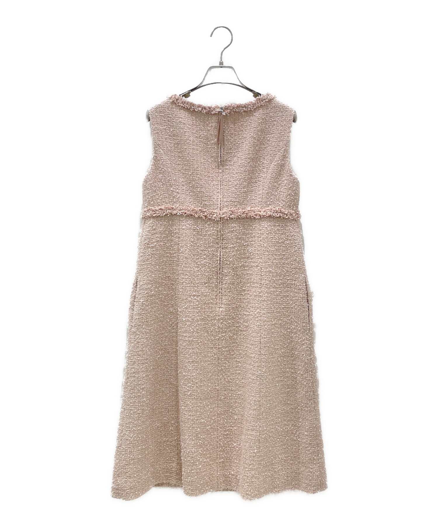スタッフコメント 優しいピンクベージュのツイード生地が上品な華やかさを演出するエレガントなワンピースでございます。ネックラインやポケットまわりに施されたフリンジディテールが、女性らしい柔らかなアクセントとなり、立体感のある表情を添えております。一枚でシックに決まり、特別なシーンからお食事会まで幅広く活躍する、FOXEYらしい洗練と可憐さを兼ね備えた一着でございます。