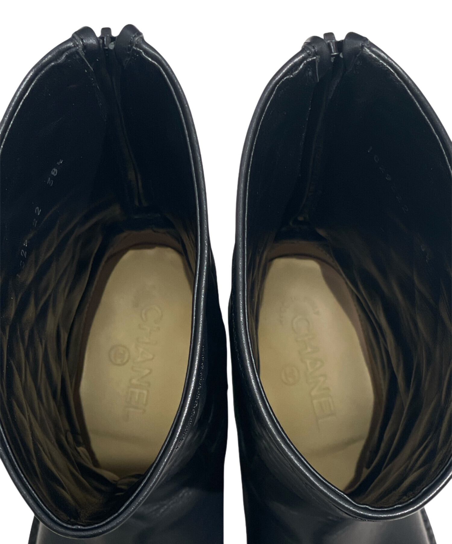 | スタッフコメント | CHANELのブーツでございます。ブランドを象徴するキルティングとココマークが映えるデザインです。しなやかな履き心地と美しいシルエットを両立しており、ジップ仕様により着脱しやすいです。 |