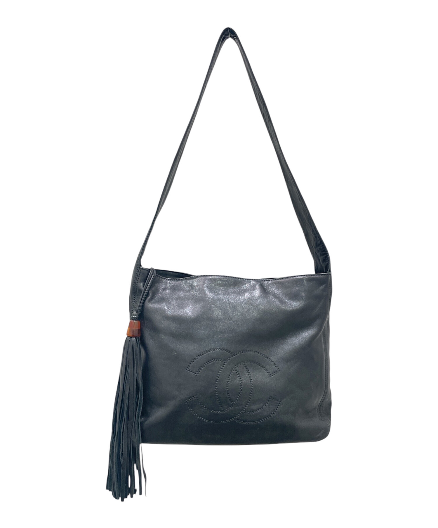 | スタッフコメント | CHANELのレザーショルダーバッグでございます。上質なラムスキンレザーにクラシックなココマークがあしらわれ、フリンジが動きに華やかさを添える逸品でございます。程よいサイズ感とショルダーの長さで、デイリーユースからお出かけまで幅広く活躍いたします。 |