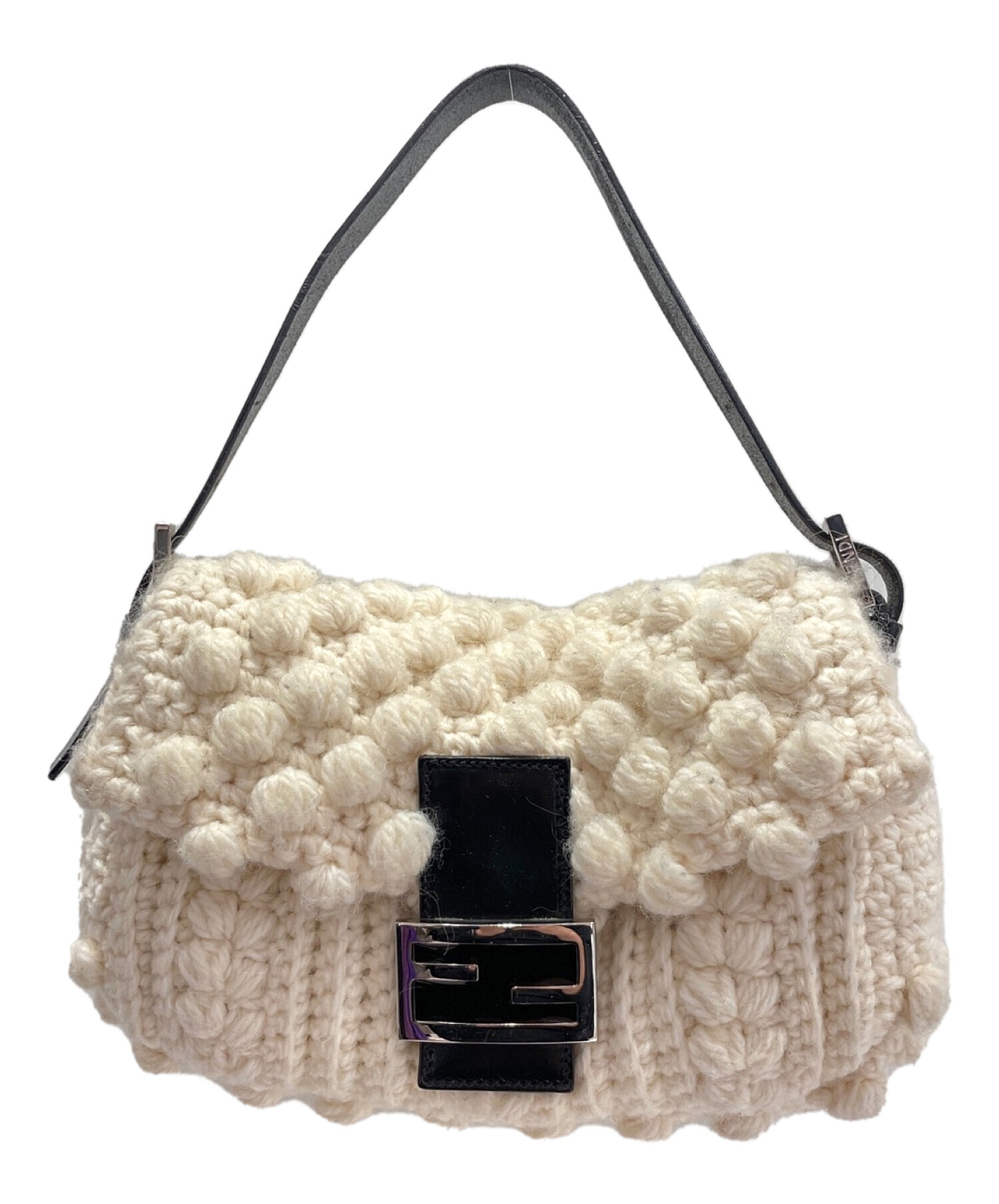 | スタッフコメント | FENDIを代表するマンマバケットより、ニット素材の商品になります。可愛らしフォルムと、フォーマルな黒のストラップがポイントです。 |