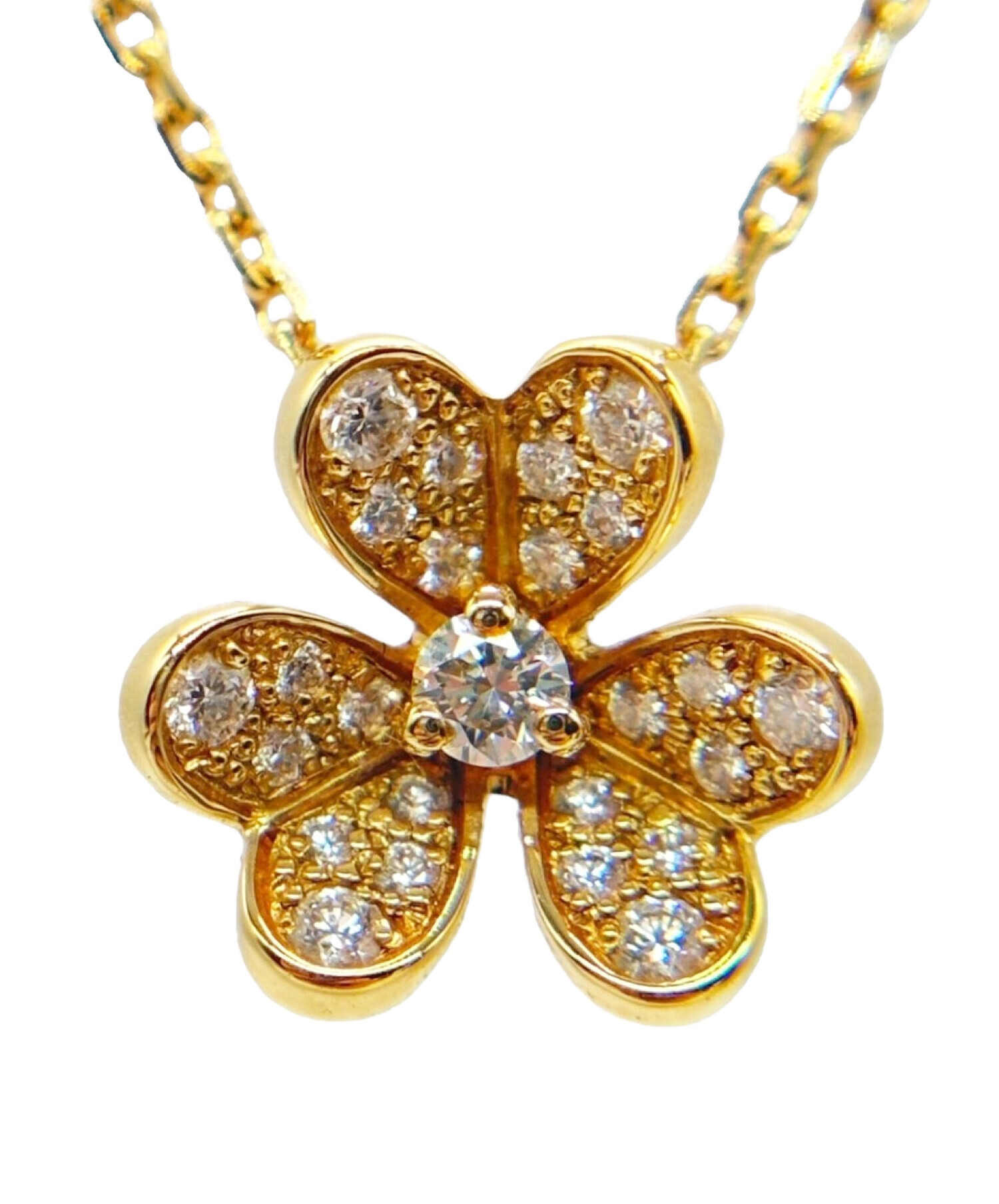 | スタッフコメント | トップに配置された美しく輝くダイヤモンドが存在感と高級感を演出するフリヴォルネックレスでございます。立体的なそのフラワーモチーフによってより女性らしさを感じられる点が魅力的です。その小ぶりなサイズ感で、様々なコーデに合わせやすく、身に着けるだけでデコルテラインを華やかに彩ってくれるおすすめのアイテムとなっております。 |