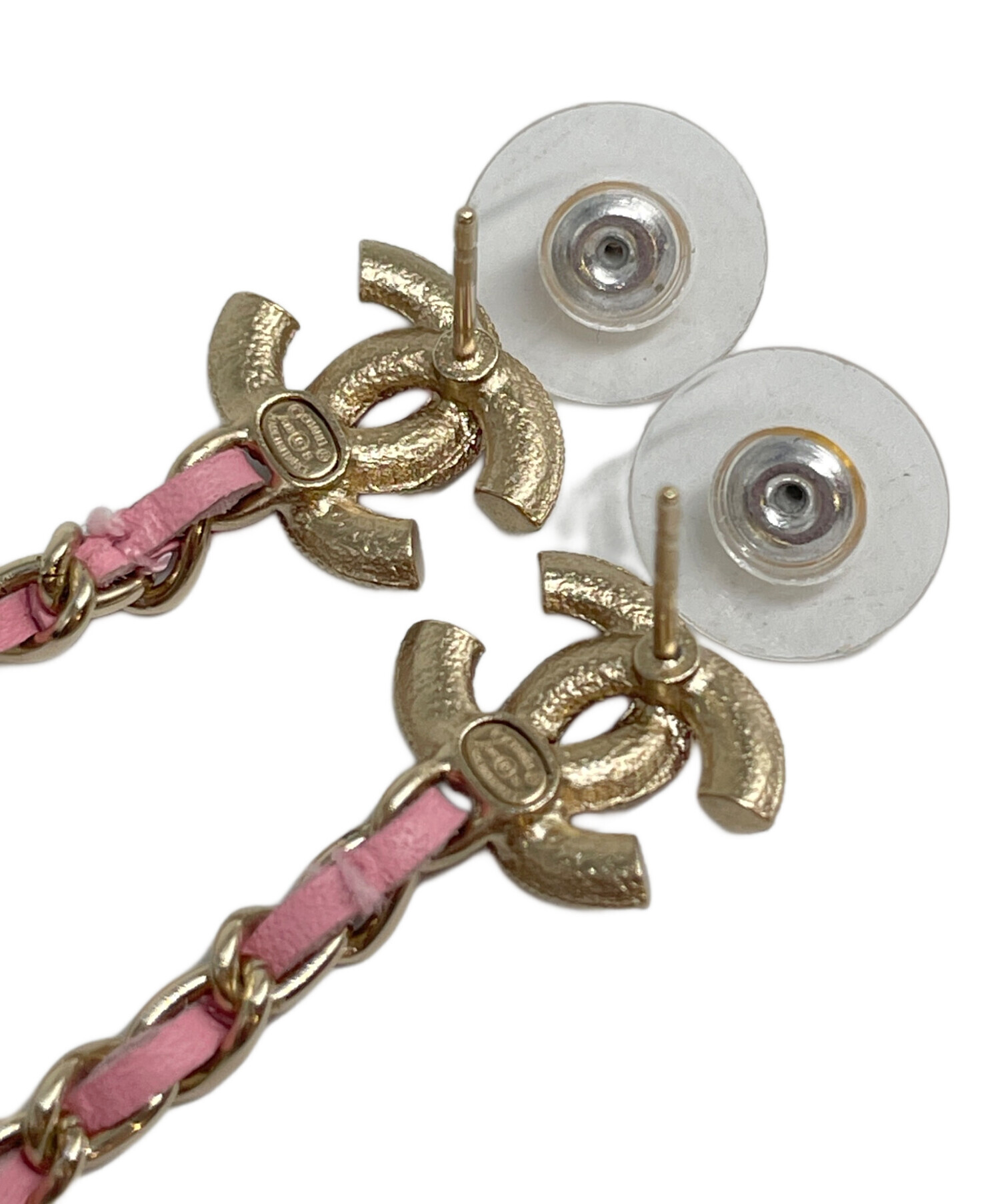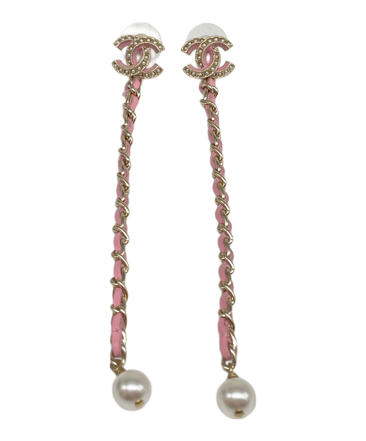 スタッフコメント CHANELのロングチェーンピアスです。ココマークの下からレザーチェーン、フェイクパールと連なっており、可愛らしい印象がございます。ピンクとゴールドの組み合わせも上品です。