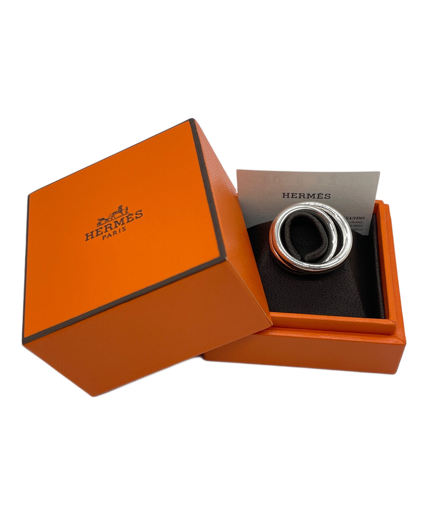 | スタッフコメント | HERMESのヴェルティージュリングでございます。2つのリングを付けているかのようなデザインが特徴的です。シンプルながらも存在感のあるアイテムですので、コーディネート問わず毎日つけるリングとしてもおすすめでございます。 |
