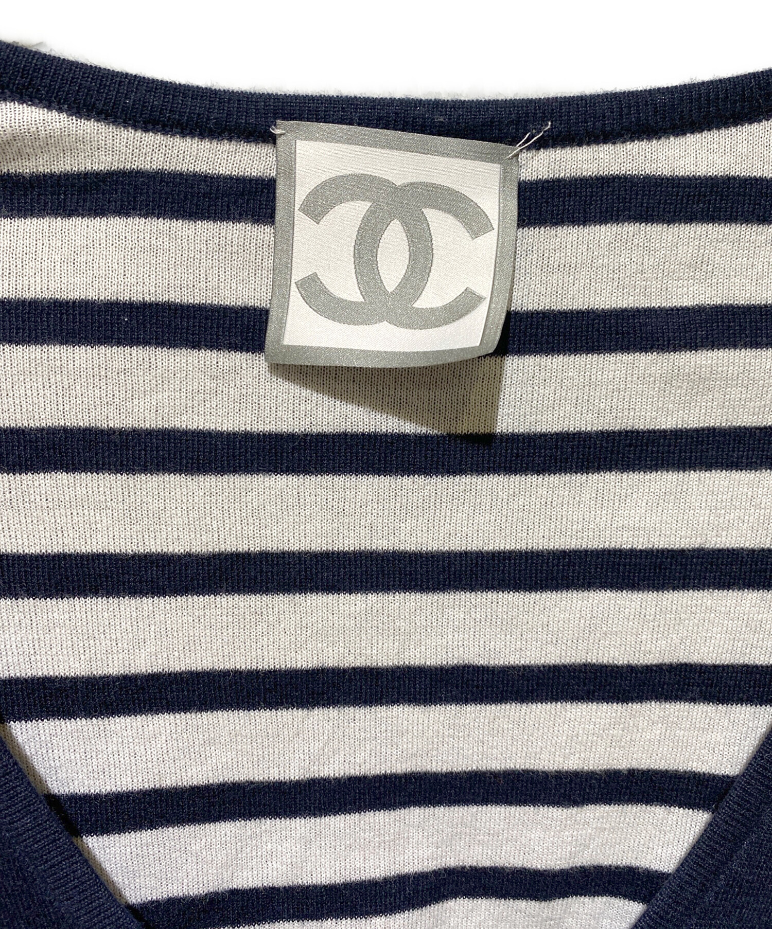 | スタッフコメント | コットン100%で仕立て上げられ肌触りも良く着心地に良いニットとなっております。袖や裾などにCHANELとデザインされていたり裏地がボーダーになっていたりとCHANELらしいアイテムです。 |