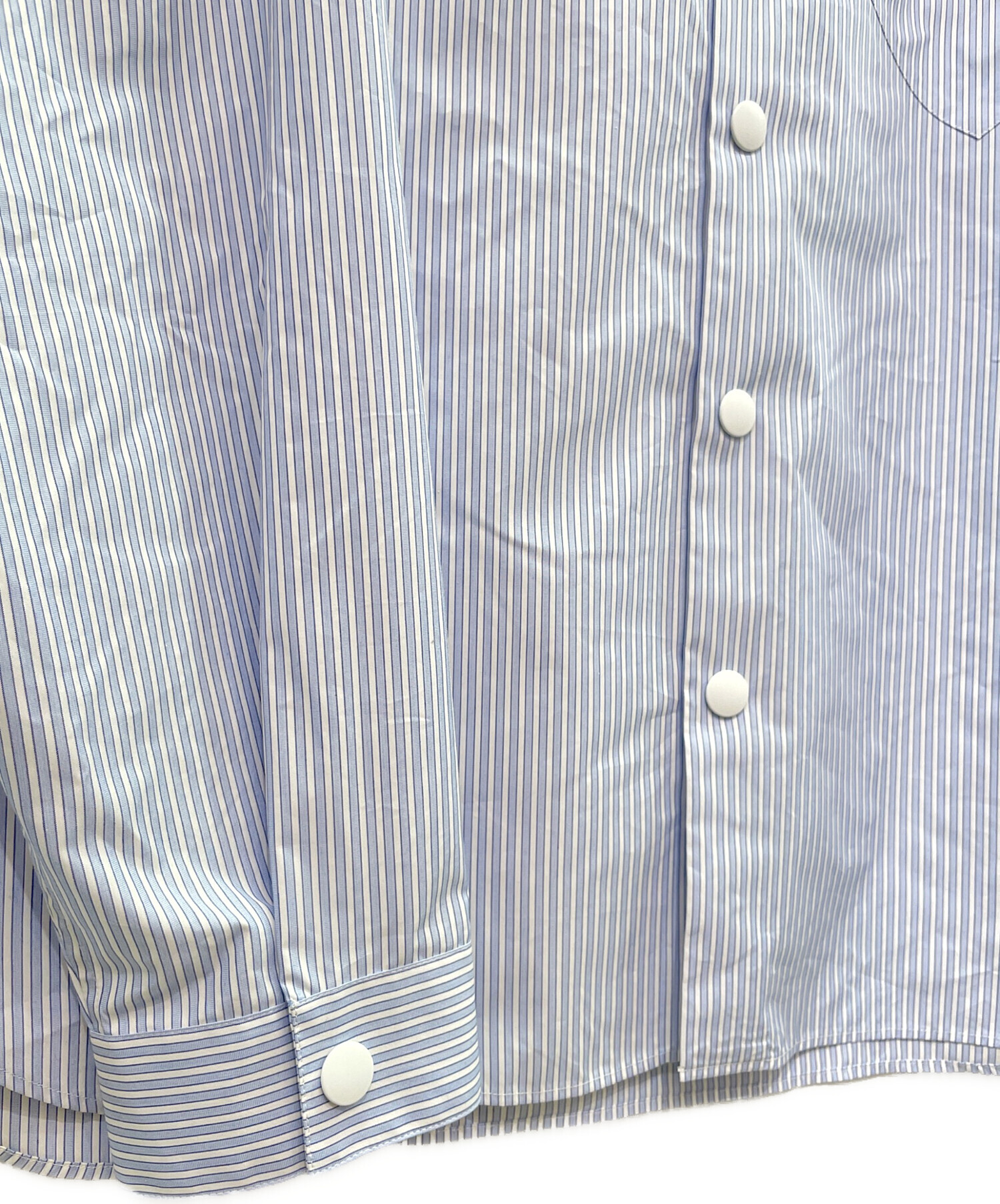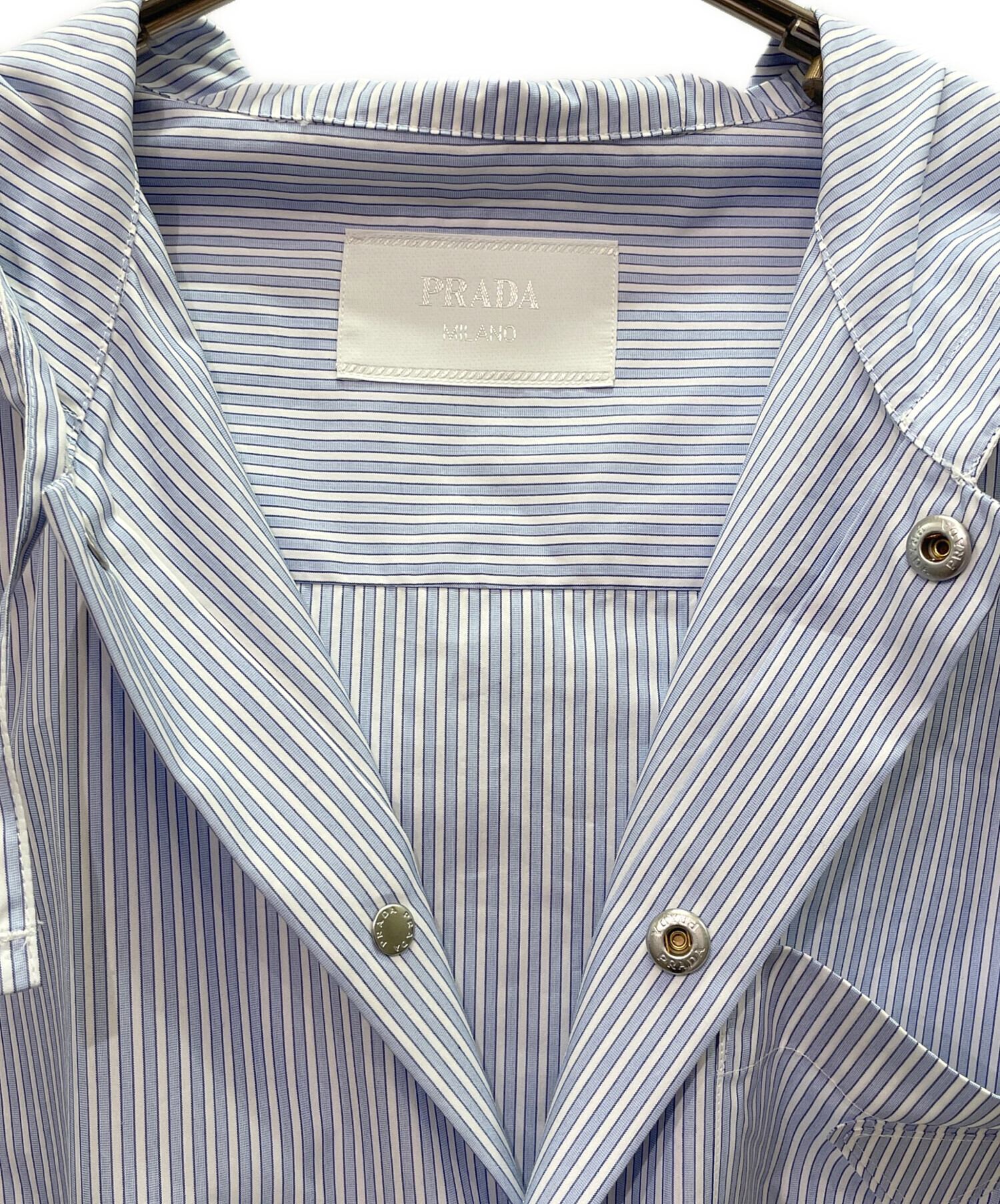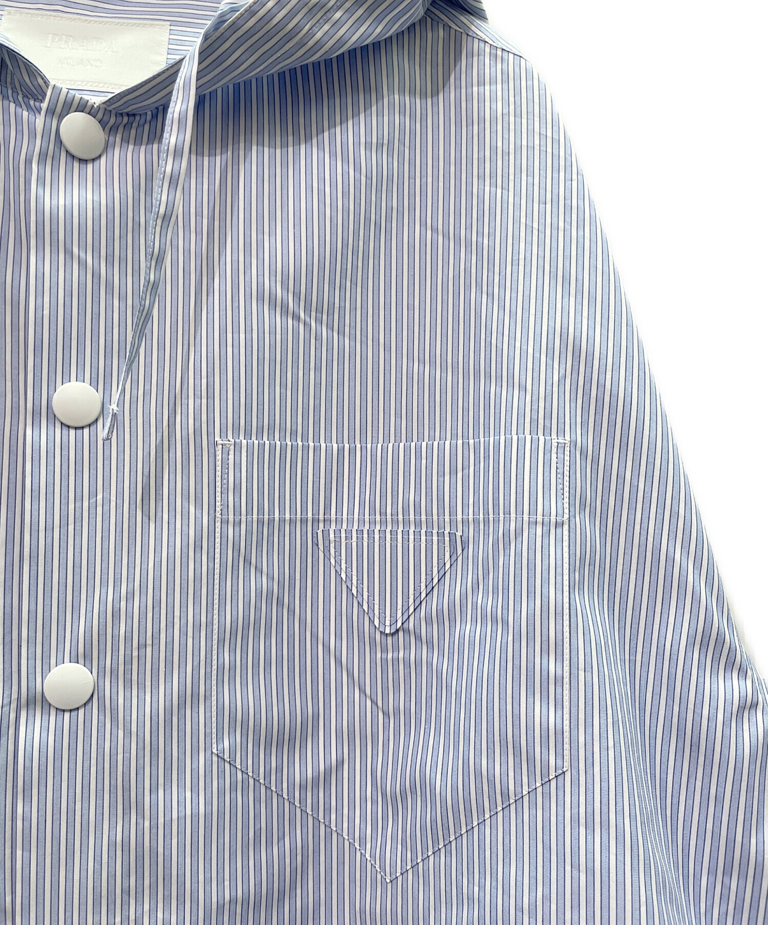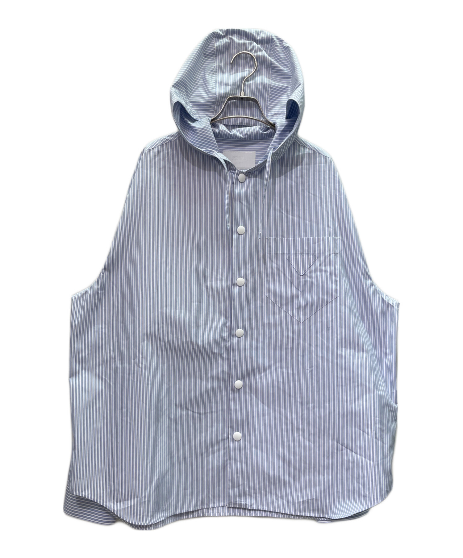| スタッフコメント | PRADAのストライプシャツでございます。コットンシャツにフードが付いており、コーディネートの幅が広がるアイテムとなっております。1枚持っていると重宝するお品物ですので、おすすめでございます。 |