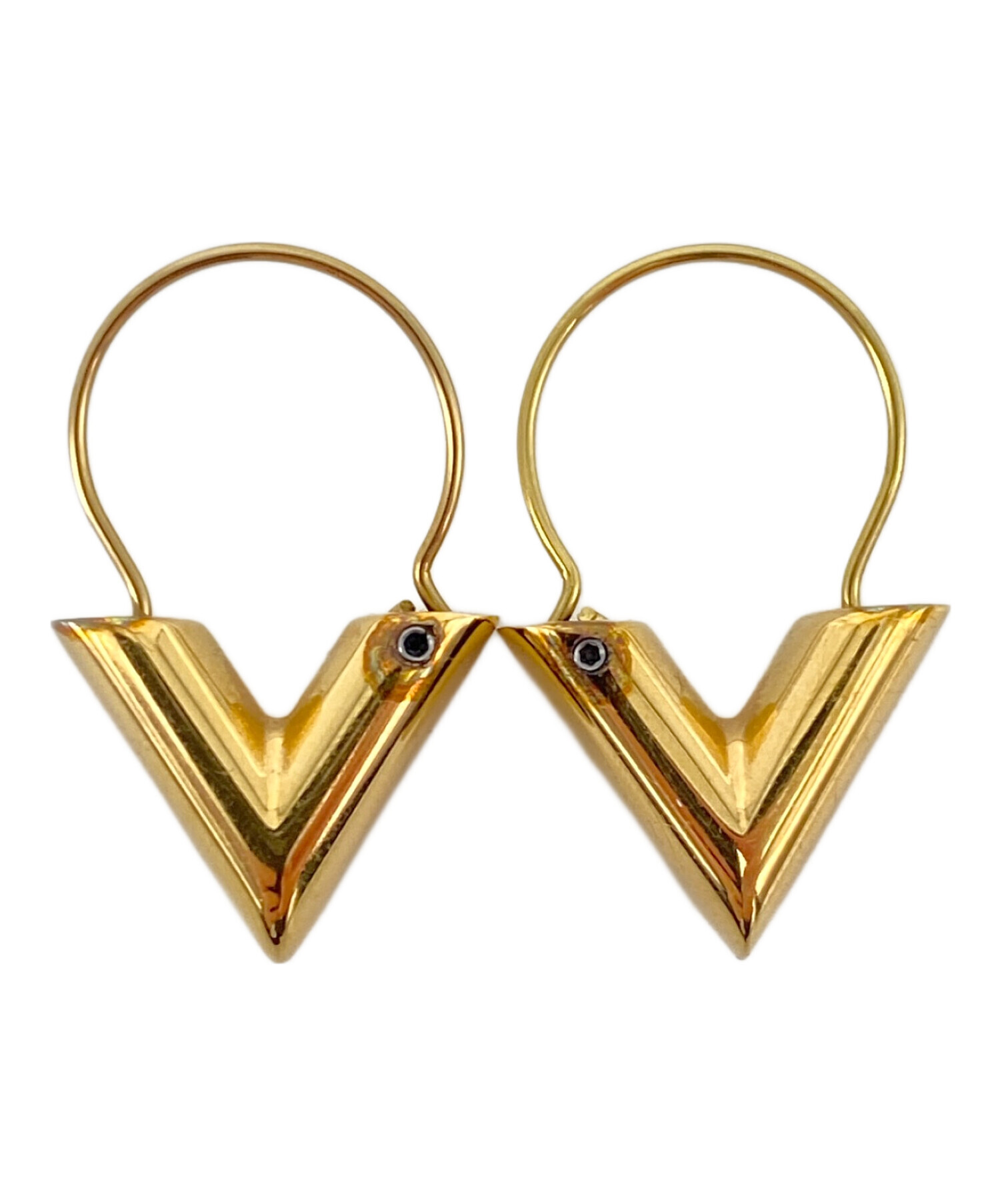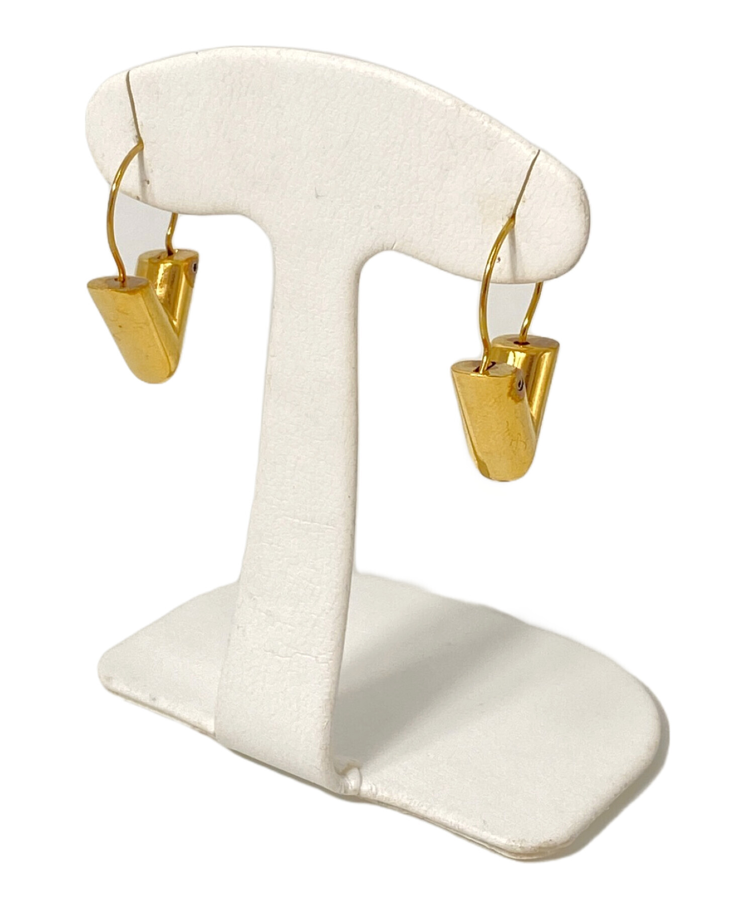 | スタッフコメント | 金色に輝いておりVのデザインでシンプルながら華やかさもある高級感あふれるピアスとなります。シンプルなシルエットによってカジュアルな服装から幅広く映えるような存在感を放ち重量感がある代物です。肌馴染みの良い発色をしており着用できる年齢層も幅広いです。 |