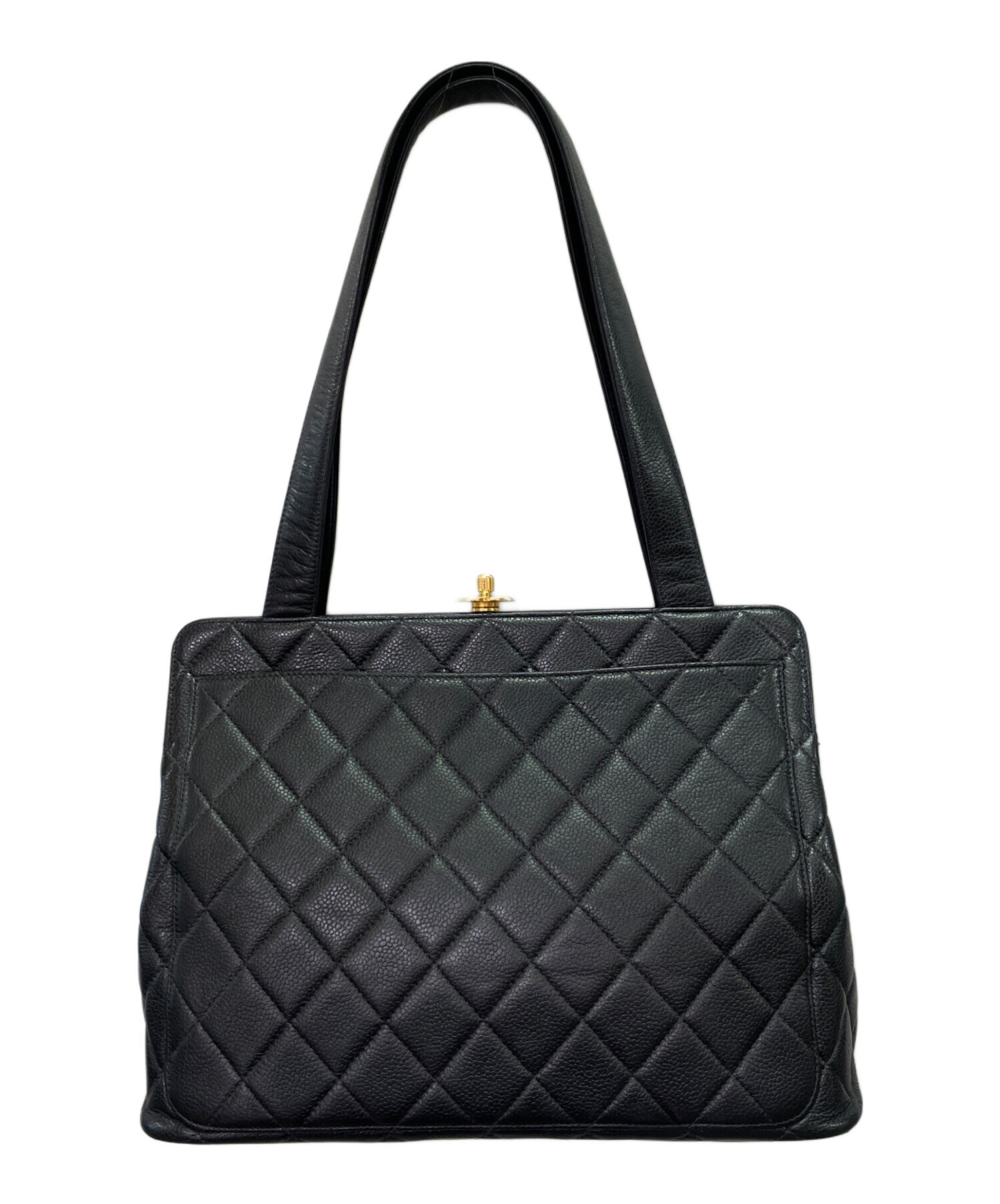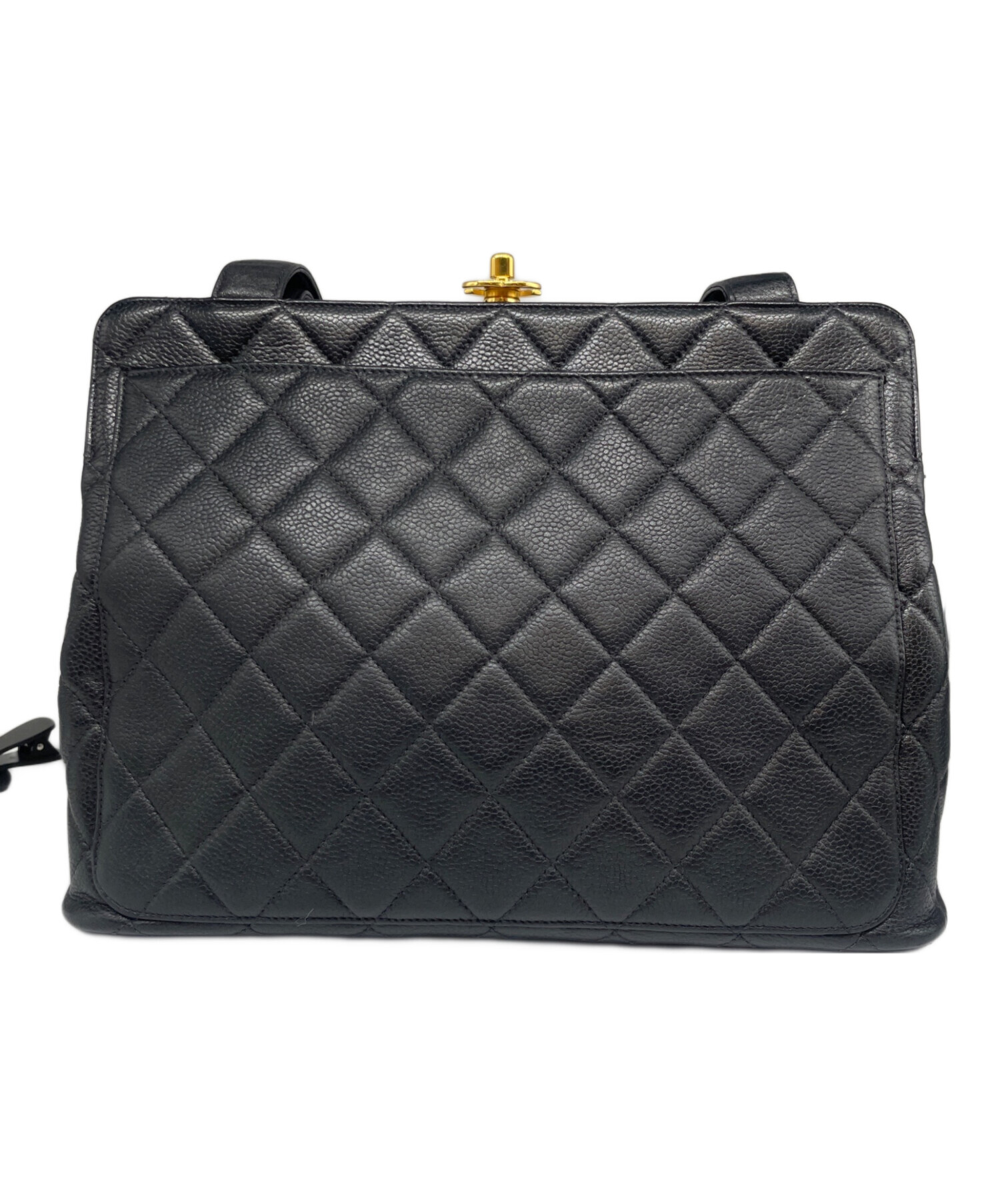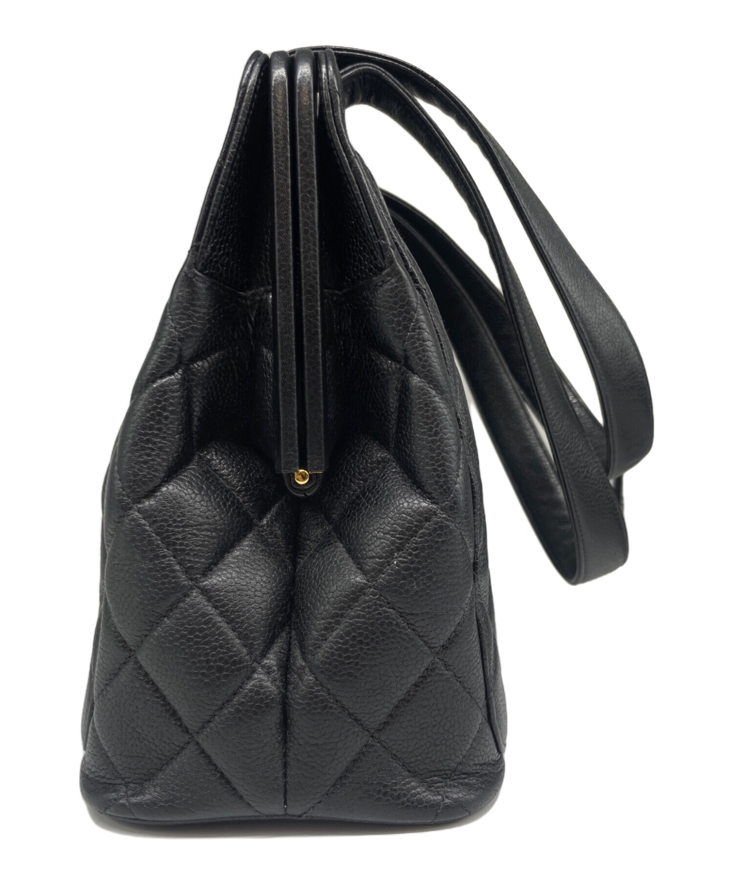| スタッフコメント | CHANELのマトラッセ ターンロック ハンドバッグでございます。素材にはキャビアスキンを使用しており、高級感とエレガンスさを兼ね揃えております。ハンドルの高さがしっかりとあるので、肩にかけてお使いいただけます。バッグ底にあるココマークがアクセントとなっております。 |