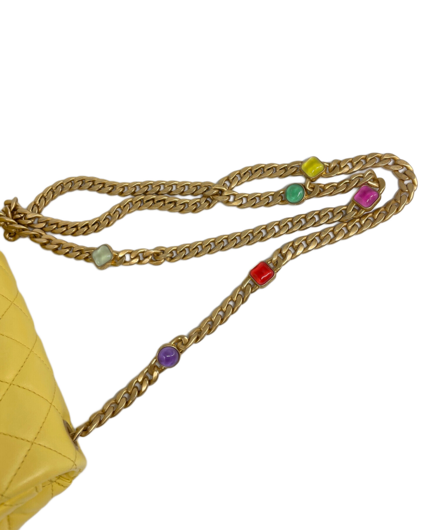 | スタッフコメント | ダイヤ型のキルティングやラムスキン、ストラップにデザインされた石など、非常に高級感あるCHANELのチェーンショルダーバッグとなっております。通常のマトラッセよりもコンパクトなサイズ感となっており、日常使いしやすいアイテムです。また、キルティング加工により型崩れしずらく、長く愛用して頂ける一品となっております。 |