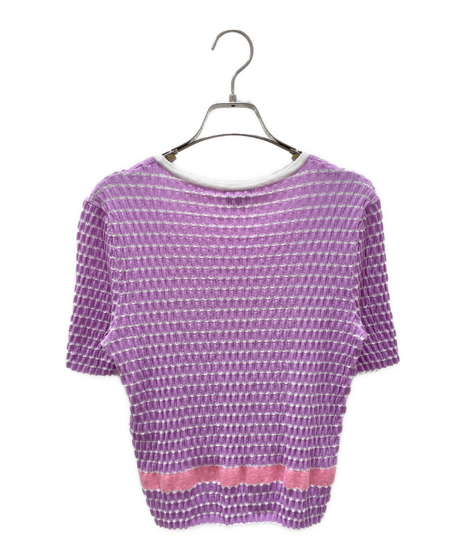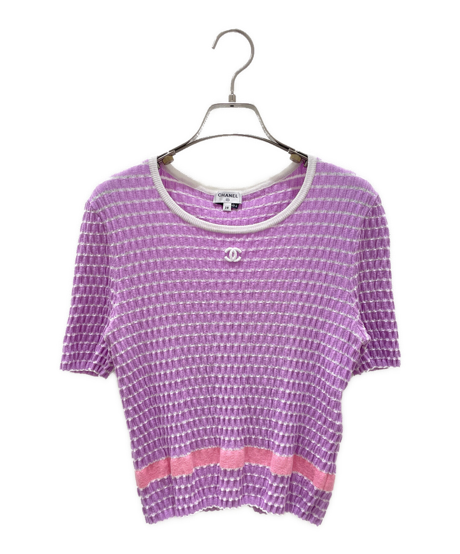 | スタッフコメント | シャネルのロゴ半袖カットソーでございます。胸元にシャネルのロゴが装飾されており、華やかなラベンダーカラーが目を惹くアイテムです。シンプルながらデザイン性が高い一着で、コーディネートにエレガントさを与えてくれます。 |