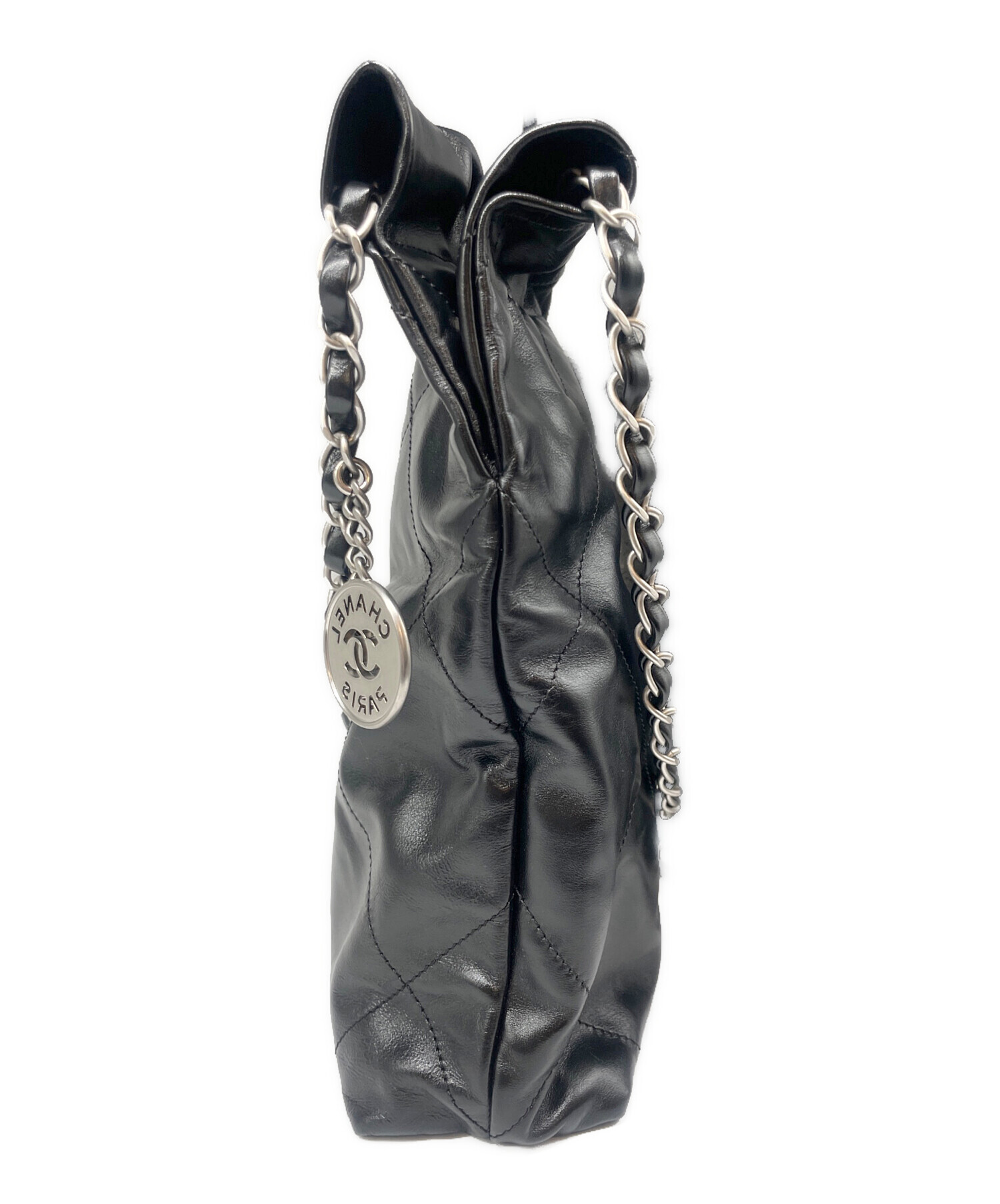 | スタッフコメント | CHANELのアイコン的アイテムでもあるCHANEL22でございます。フロントにブランドロゴがデザインされており、柔らかい手触りに光沢感がございます。また、スモールサイズですが、収納力にも優れているので普段使いにも最適なアイテムです。オールブラックカラーで独自の光沢感が魅力的で、ハンドバッグとしてもショルダーバッグとしてもお使い頂けます。 |