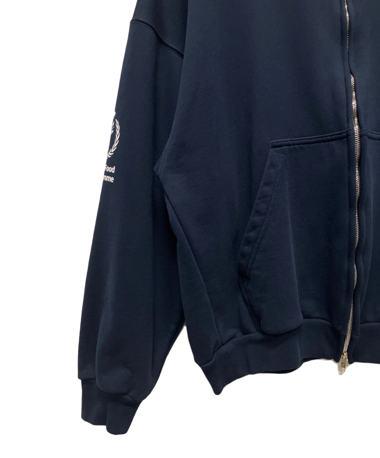 | スタッフコメント | BALENCIAGAが支援するWPFとのコラボモデルである、ジップアップパーカーでございます。胸元にシンプルなロゴがデザインされており、ワンポイントになっています。落ち着いたネイビーカラーでコーデに合わせやすいアイテムです。 |