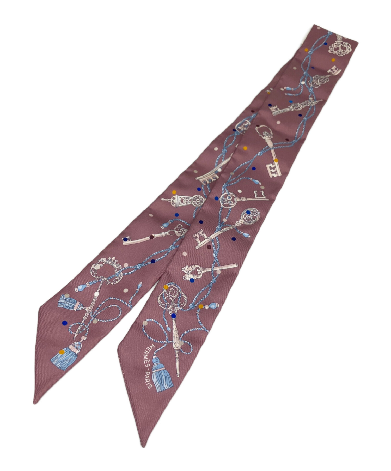 | スタッフコメント | 鮮やかなパープルカラー地に限モチーフのデザインが特徴的なHERMESのレクレアポア・ツイリーになります。様々な用途で使用することができ、他のアイテムとの組み合わせで普段のスタイリングをワンランクアップさせるオススメのアイテムです。 |
