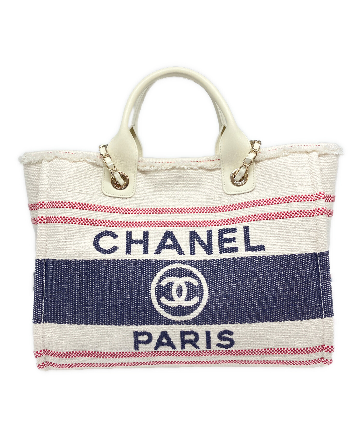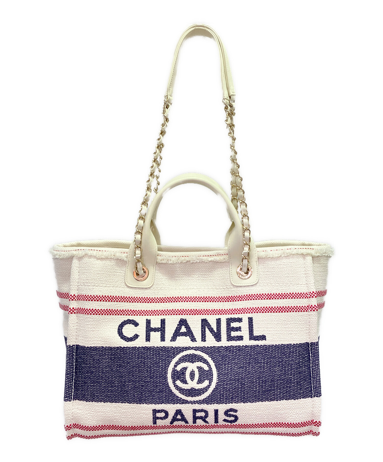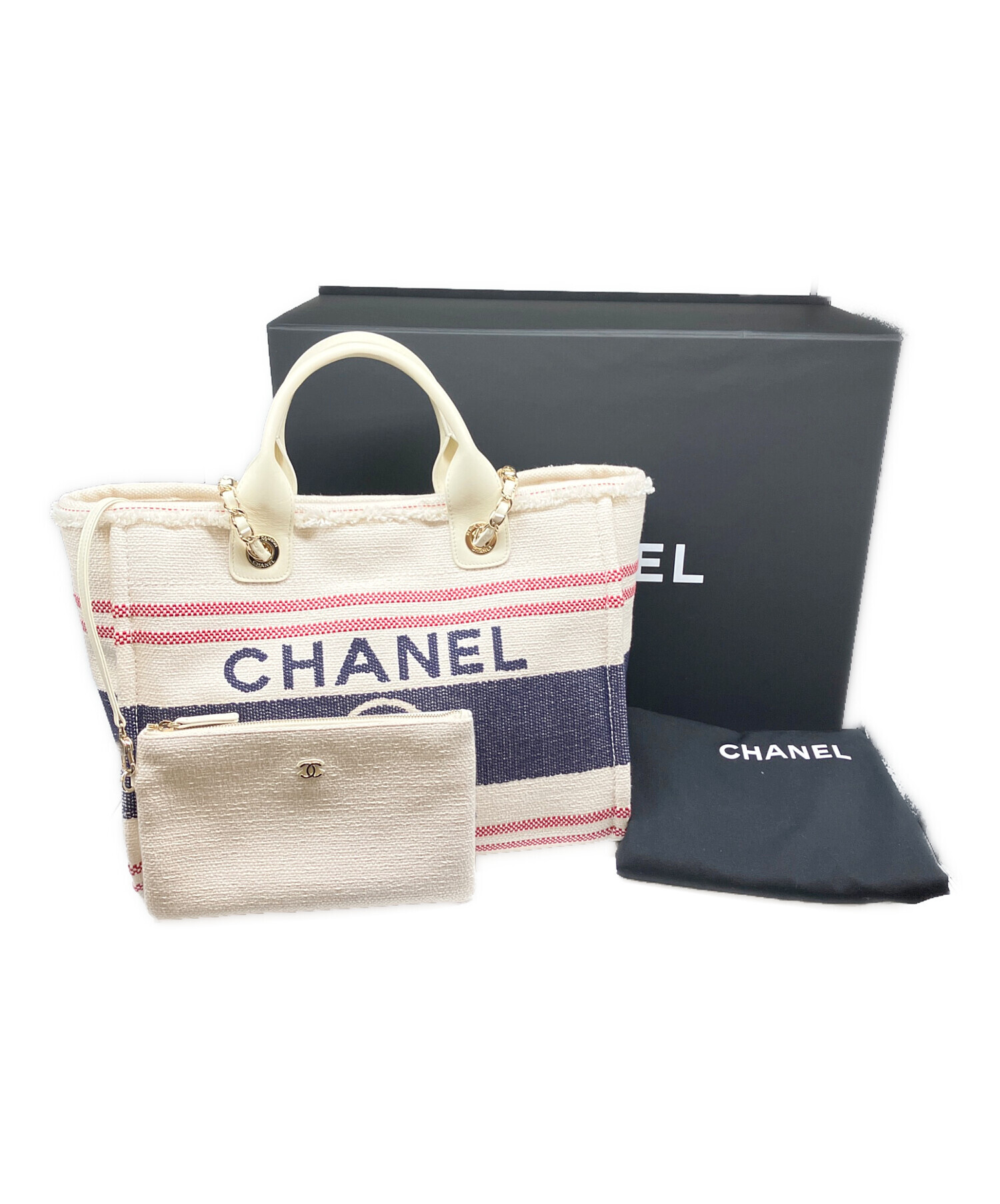 | スタッフコメント | CHANELのアイコン的存在でもあるドーヴィルでございます。素材にはキャンバスを使用しており、ラグジュアリー過ぎないデザインが特徴でございます。お使いやすく、マチもしっかり、収納力も兼ね揃えております。 |