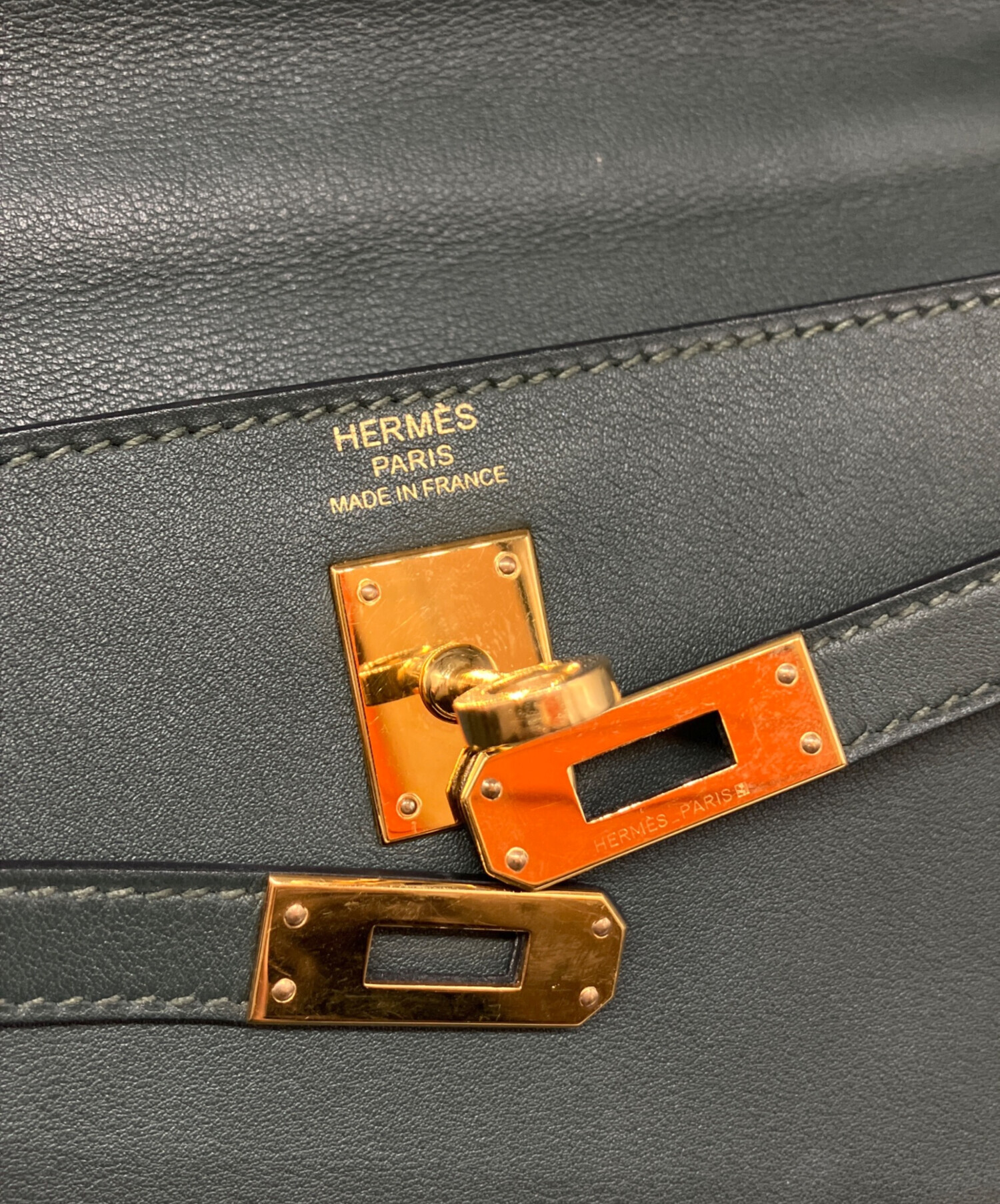 | スタッフコメント | 柔らかなスイフト素材を使用した、HERMES「ケリー25」でございます。落ち着いたグリーン系のお色に、ゴールドカラーの金具が映えるデザインとなっており、ブラックやエトゥープなどとはまた異なる、上品な雰囲気を持っております。また、取り外し可能なショルダーストラップが付属しており、シーンに合わせて、スタイルを変えてお使い頂ける点が魅力的です。 |