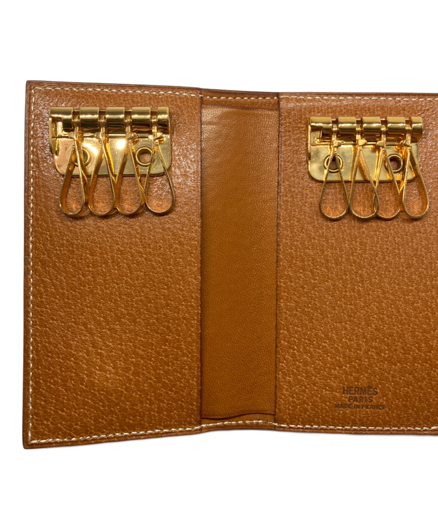 | スタッフコメント | HERMESのミュルティクレ8でございます。シンプルなデザインの中に、HERMES特有の上質なレザーを使用した大人な雰囲気溢れる1点でございます。4連の金具が2段式になっており、珍しい仕様となっております。 |