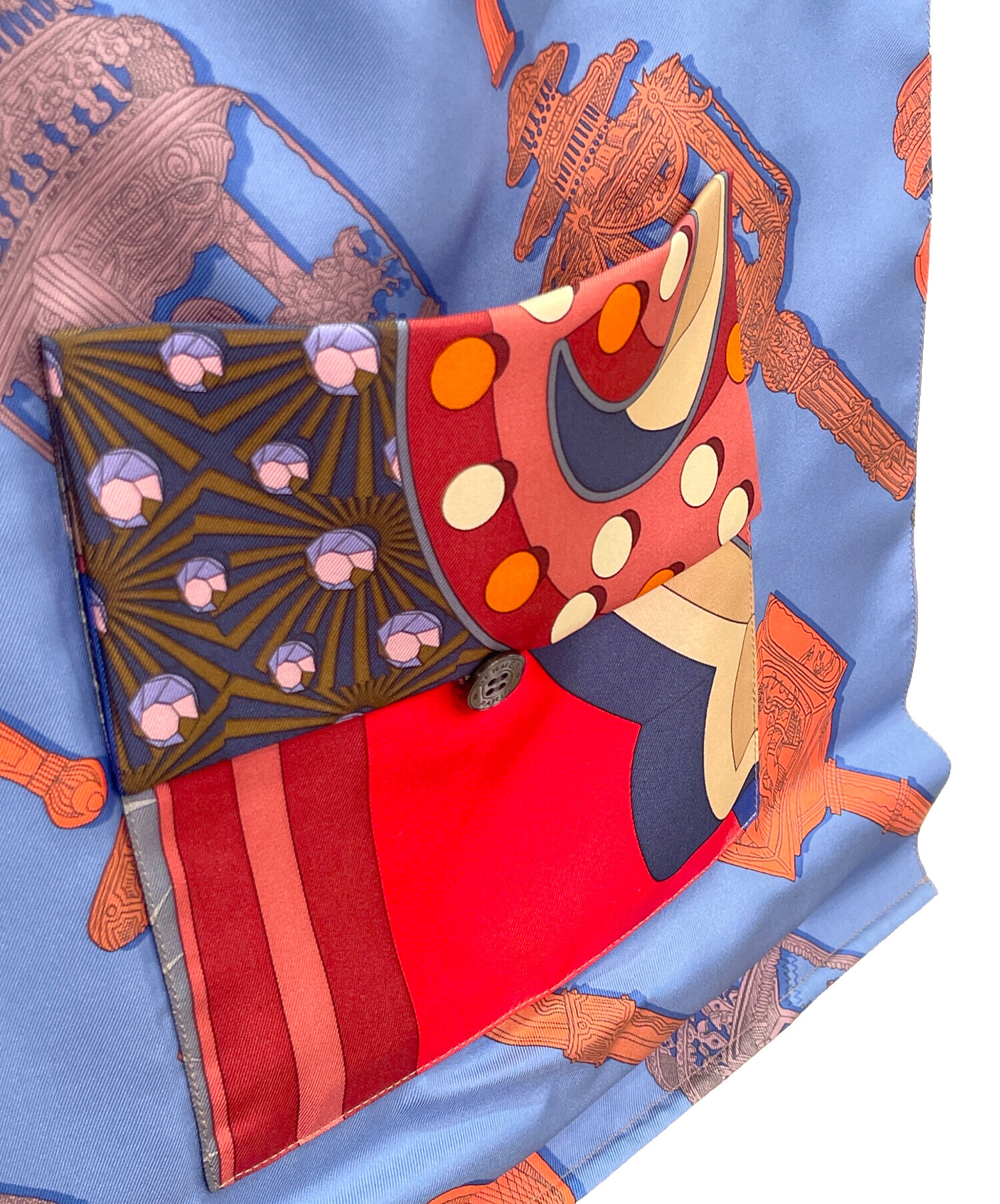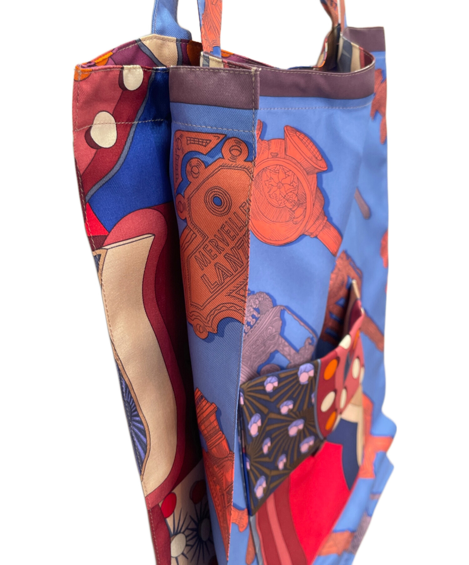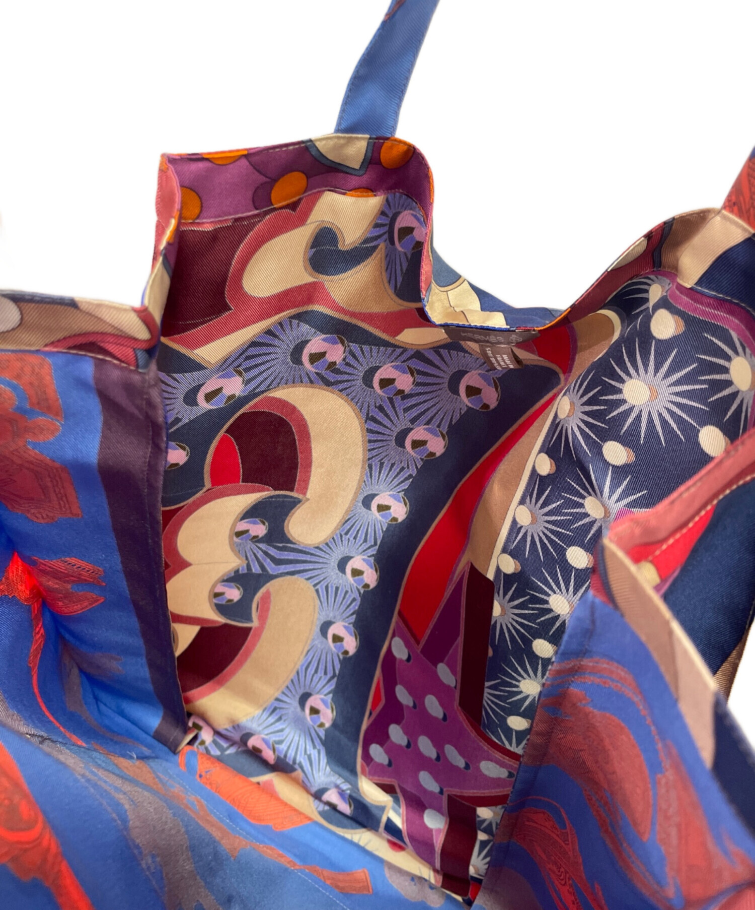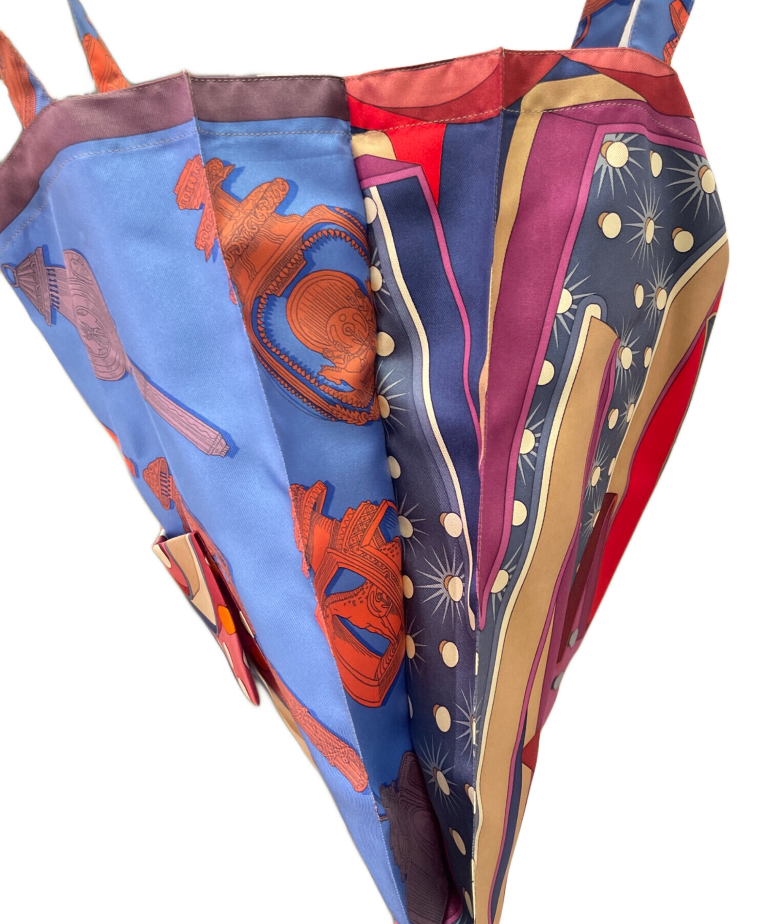 スタッフコメント 数種のデザインが組み合わさって構成されているハンドバッグです。製造工程で生じた端材などから作られており一点物であるため非常に希少性が高いアイテムです。素材はシルク100%で、自然な光沢、滑らかな手触りで上品で華やかな見た目となっております。