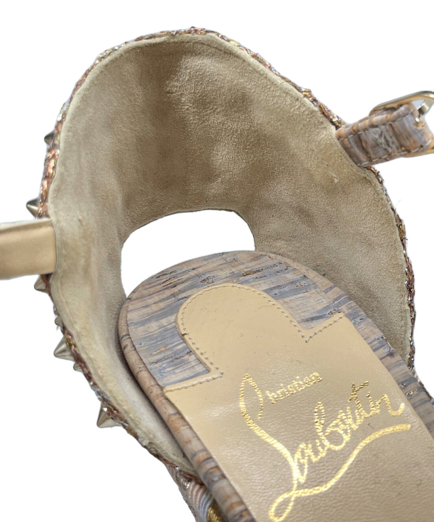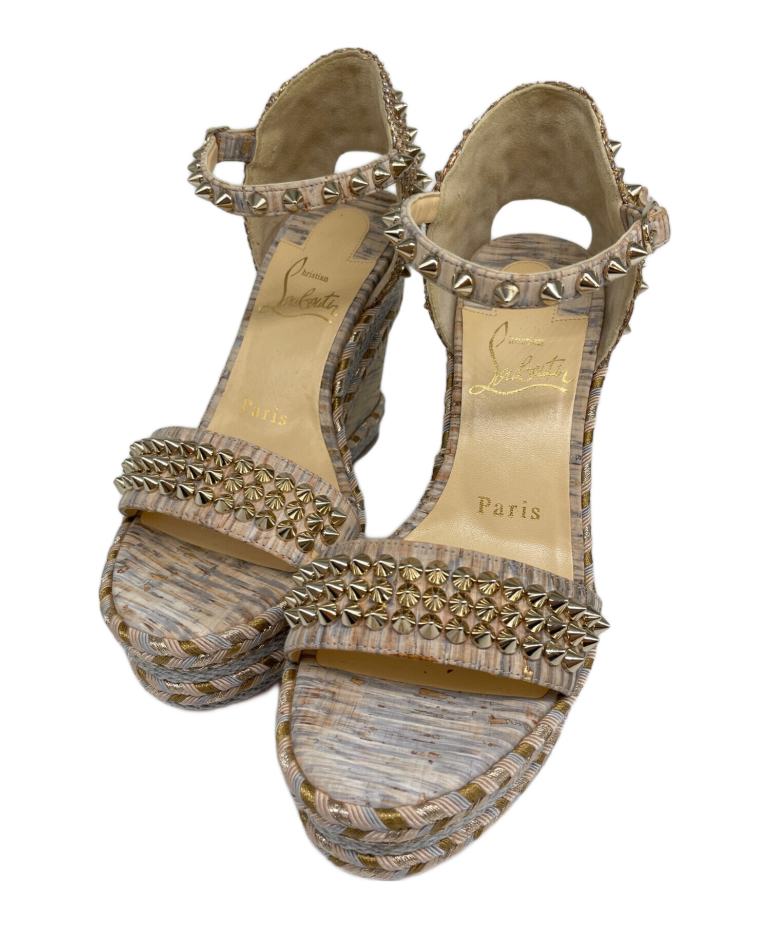 | スタッフコメント | Christian Louboutinの厚底サンダルでございます。Christian Louboutinらしいスタッズをふんだんに使用したディティールが特徴的でございます。厚底ですので、スタイルアップ効果もあり、様々なコーディネートと合わせてお使いいただけます。 |